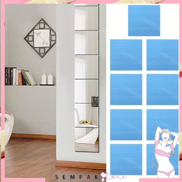 SS Stiker Cermin Dinding Anti Pecah Tempel Persegi Rectangular 15X15cm Kotak Mirror Wall Decoration Sticker Square PVC
