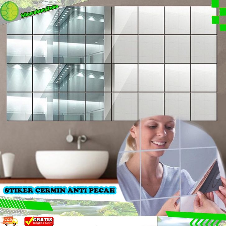 SKR Stiker Cermin Kaca Dekorasi Dinding Anti Pecah 3D M0Del Kotak Square Mirror Sticker Fender Wall Paper Wallpaper