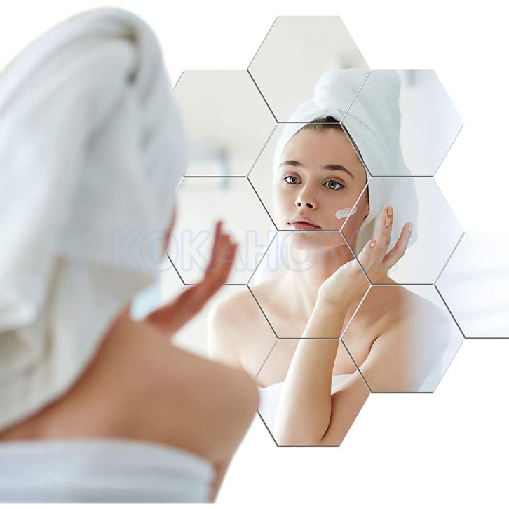 hexagonal mirror / kaca segi enam hexagon dekorasi dinding /stiker cermin dinding anti pecah tempel hexagonal
