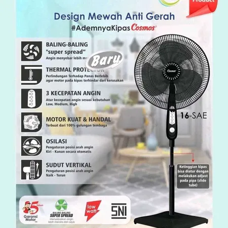 Cosmos Stand Fan 16in Baling Super Spread - Kipas Angin Berdiri Terbaru Cosmos 16 SAE / Kipas Angin Berdiri 16 SDB
