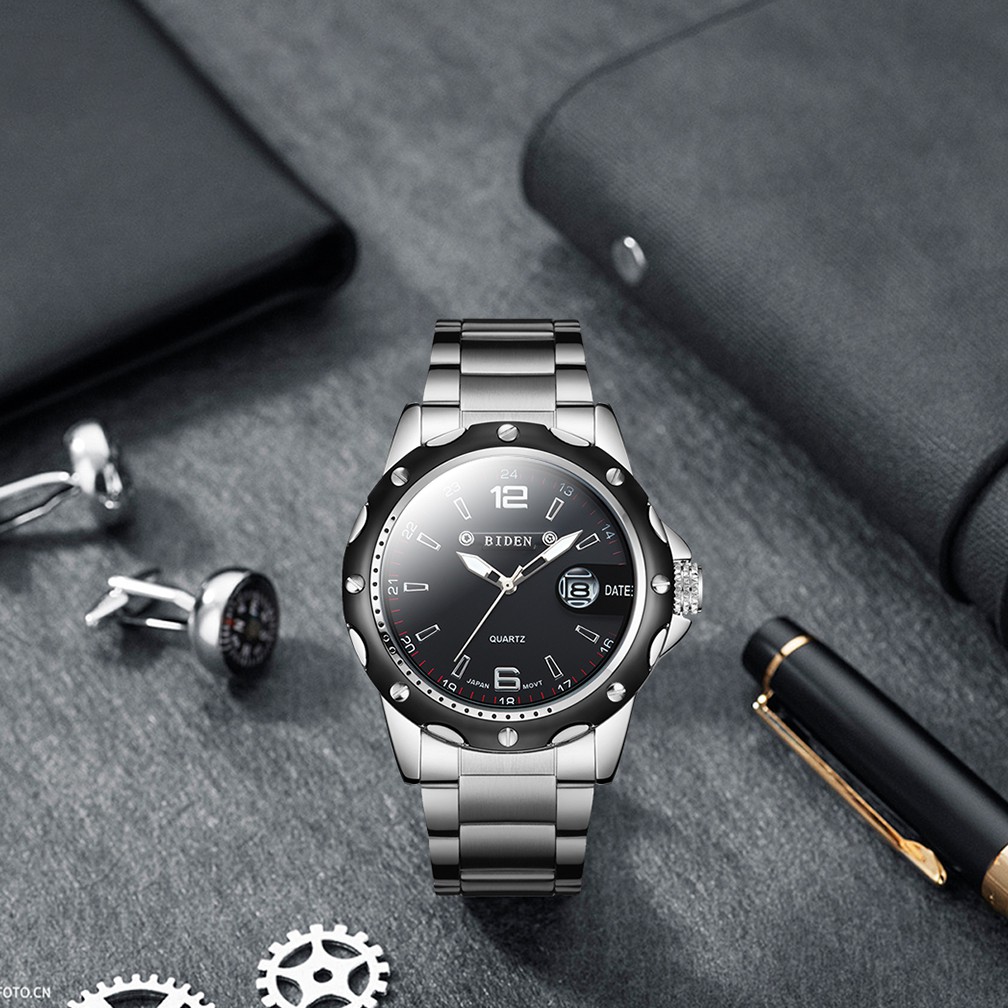 [Mall] Jam Tangan Pria Olahraga Kuarsa Otomatis Date Tali Stainless Steel Kasual Pria Jam Tangan Cowok Anti Air Original