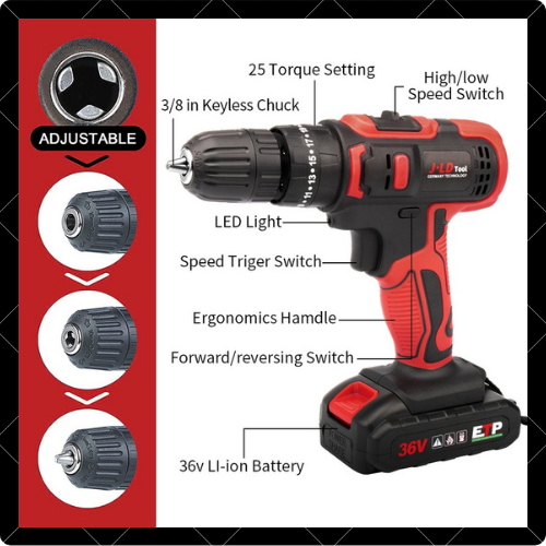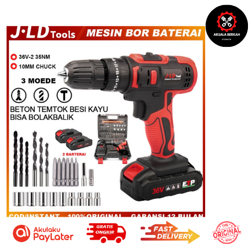 Mesin bor JLD 36VF baterai bor 36-2 bor Impact listrik bor cordless murah 10mm Bor cas/3Mode-bor Impact obeng AB779