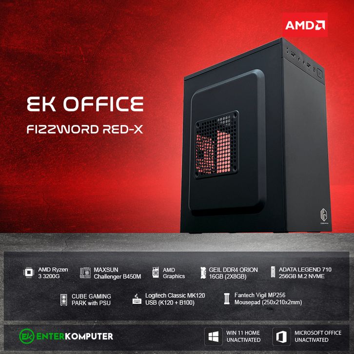 PC Rakitan EK Office Fizzword Red-X - Ryzen 3 - Enter Komputer