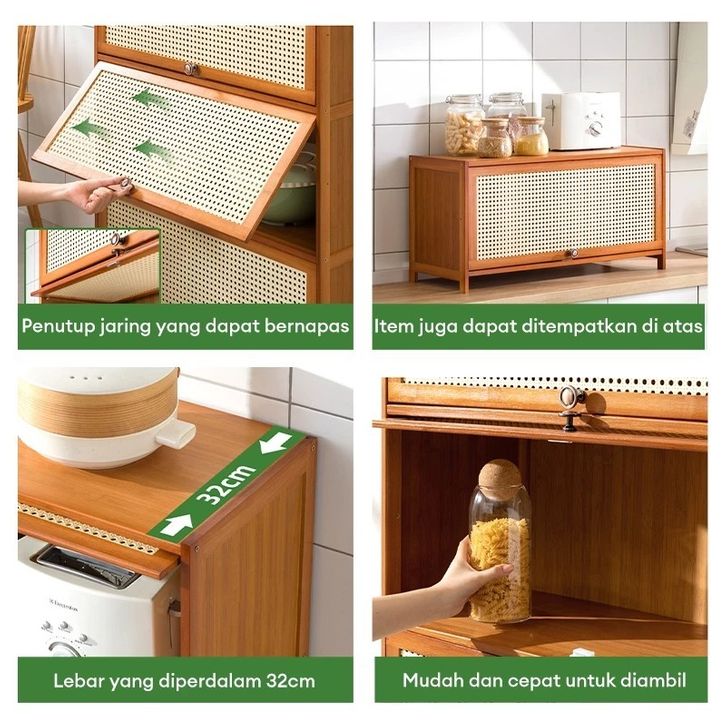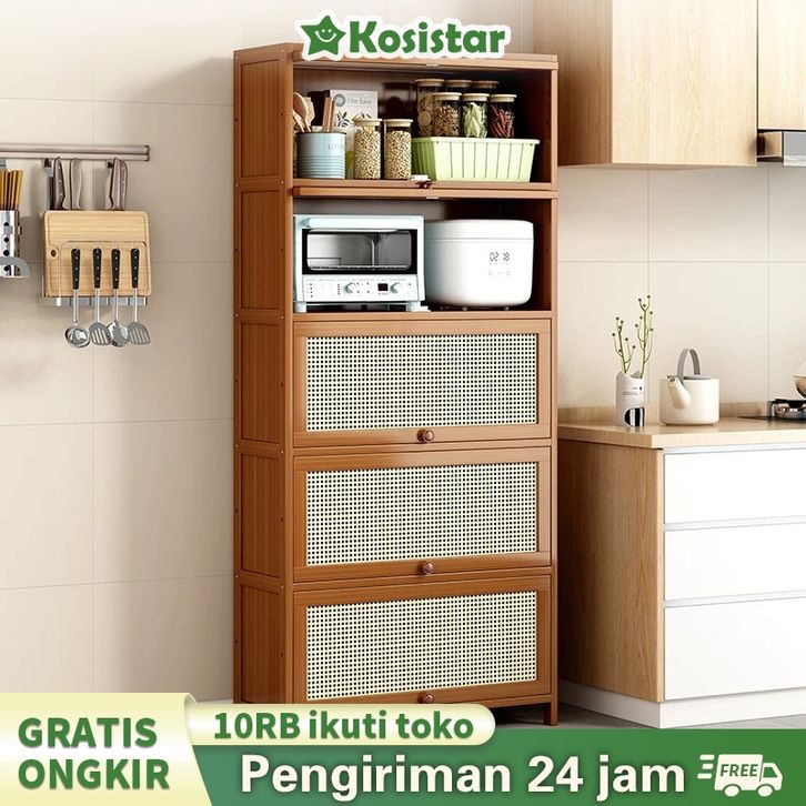 Kosistar-Lemari Dapur Rak Dapur Serbaguna Rak Oven Microwave Rak Kabinet Dapur Rak Dapur Anti Debu Dengan