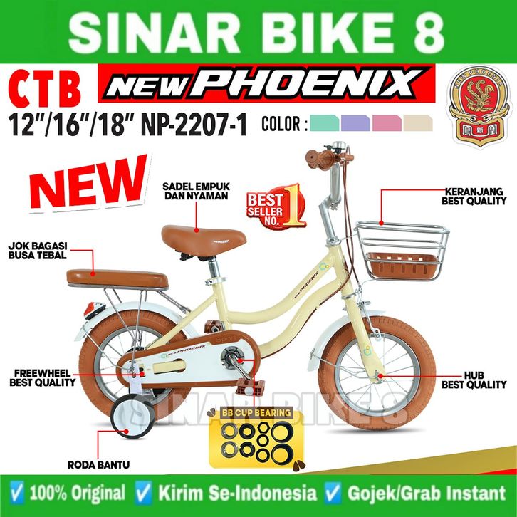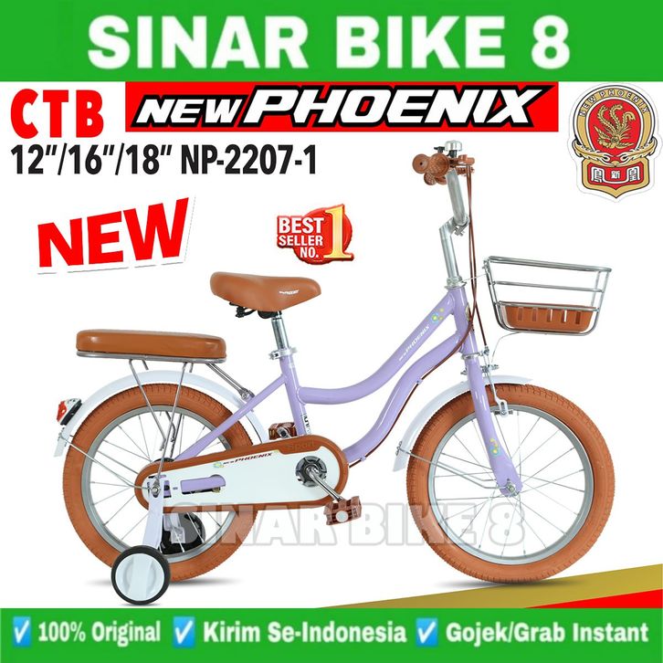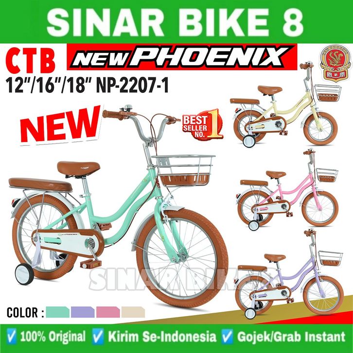 Sepeda Anak Perempuan NEW PHOENIX NP - 2207 City Bike Ukuran 12 16 18 Inch Keranjang Besi