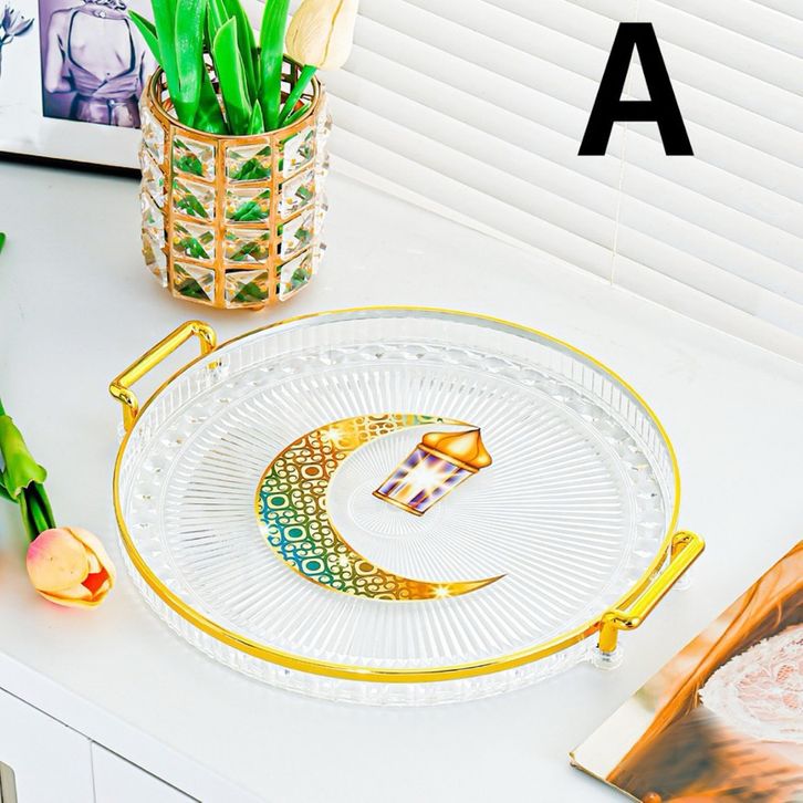 Lebaran Nordic Luxury Tray / Nampan Tray / Dekorasi Nampan Tray Mewah / Tray Akrilik / Nampan dengan Pegangan Handle Gol