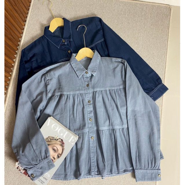 Atasan Wanita Lengan Panjang Kemeja Jeans Crop Top dengan Desain Stylish