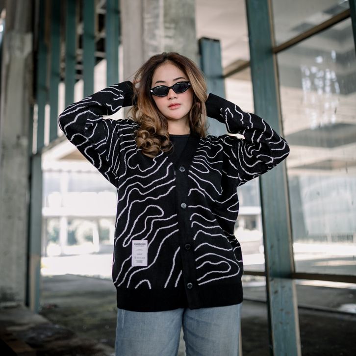 Cardigan Casual Unisex Knitwear Timebomb WAVE ( WHITE )