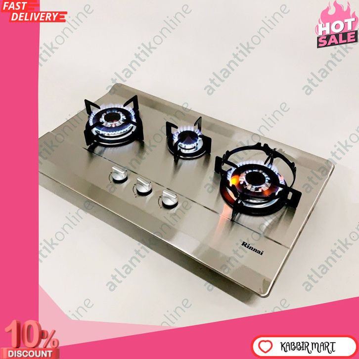 Kompor gas tanam built in hob 3 tungku RINNAI RB 713N S RB713NS