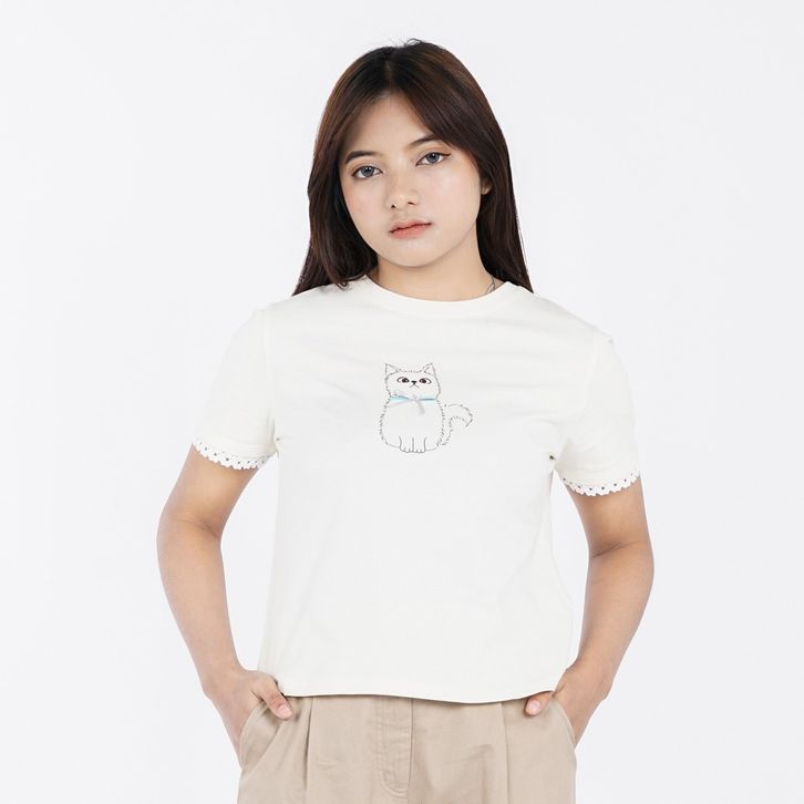 3Second Women's T-Shirt Short Sleeve Boxy Fit Cotton Kitten C130225