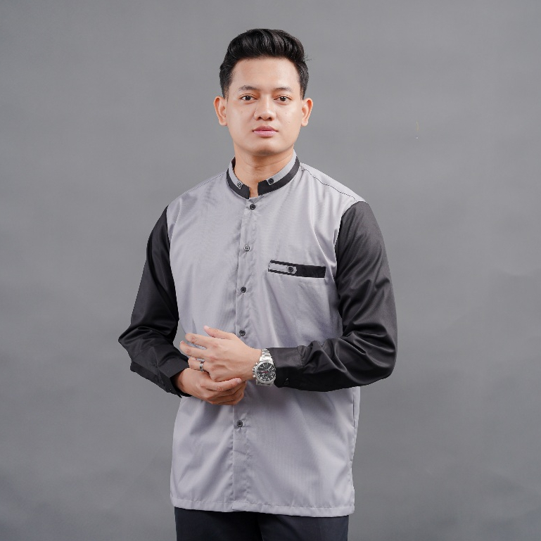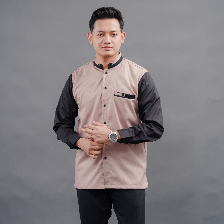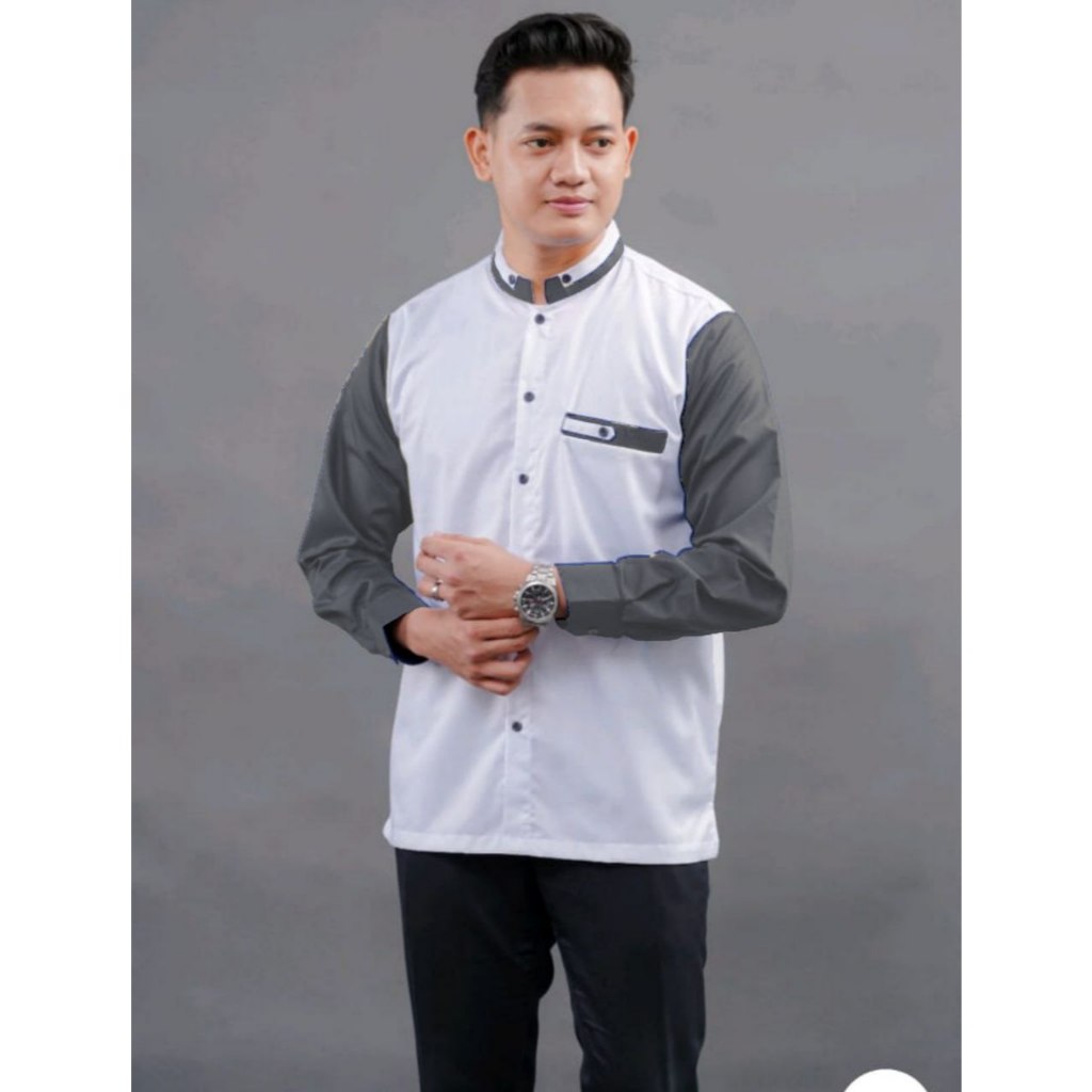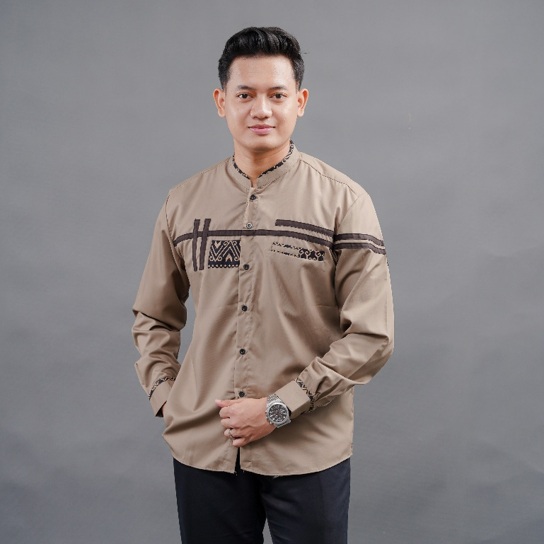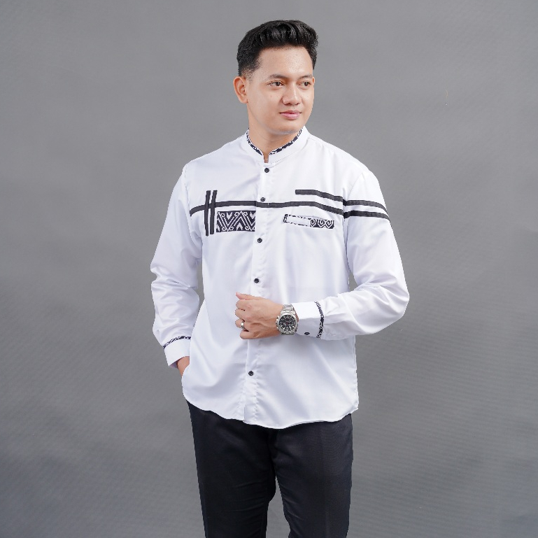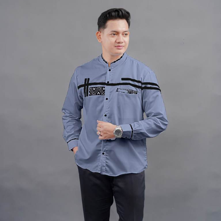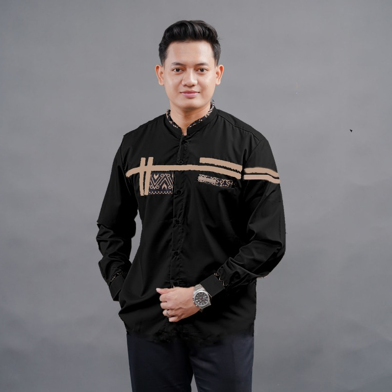 Baju Koko Muslim Lengan Panjang Kombinasi Batik Original AR RIBHAN Bahan Katun Pakaian Pria Dewasa Baju Kemeja Koko