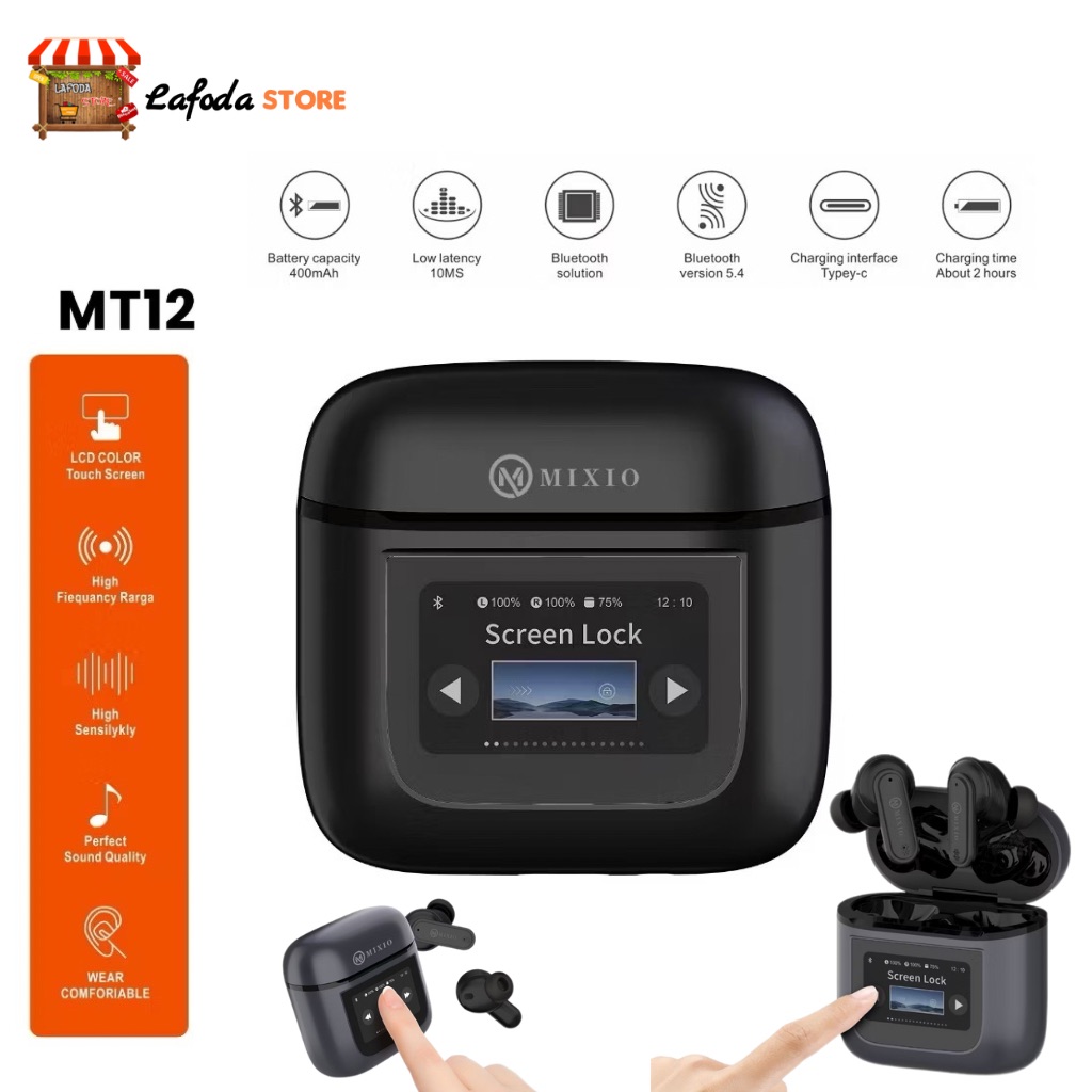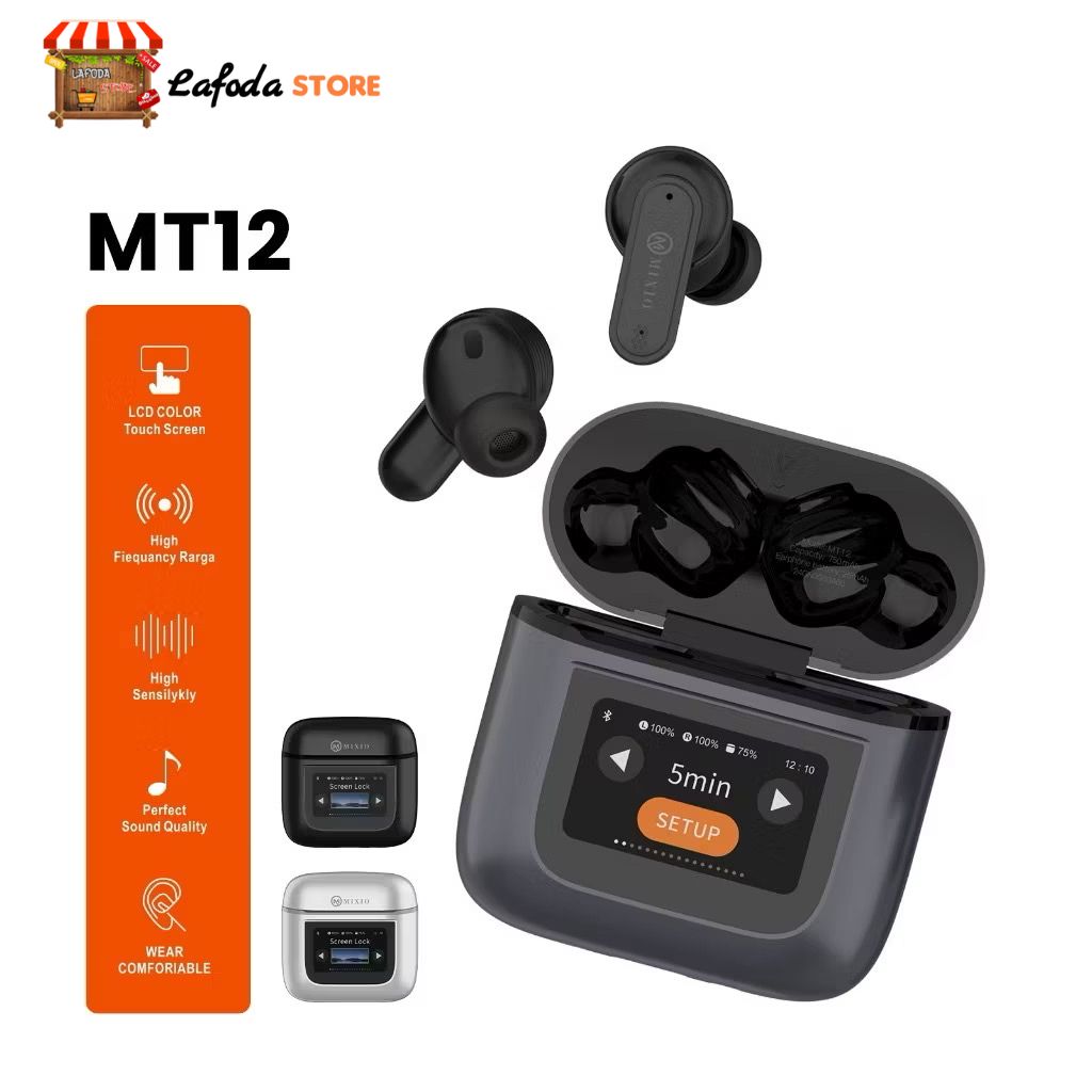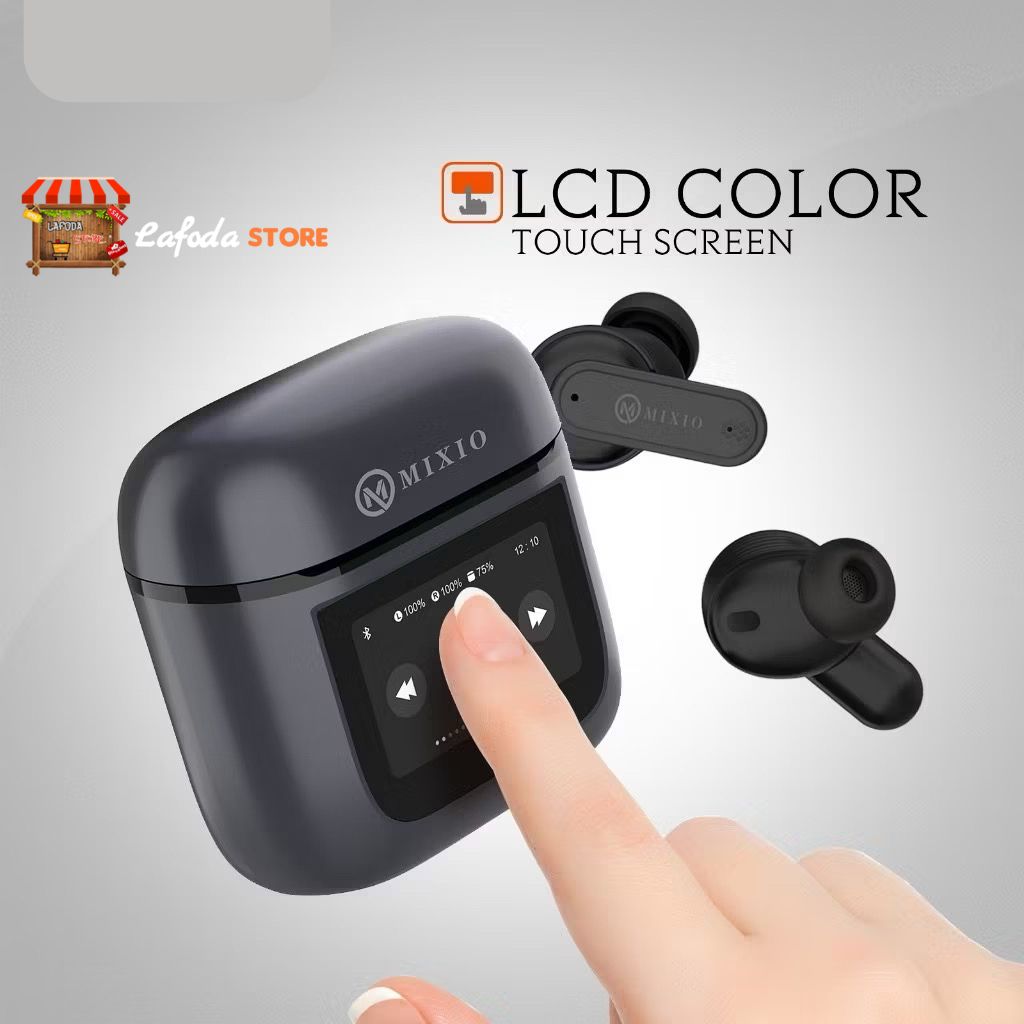 MIXIO MT-12 ANC TWS LCD Layar Bluetooth Headset Earphone Touch Screen V5.4 Smart Screen Active Noise Reduction