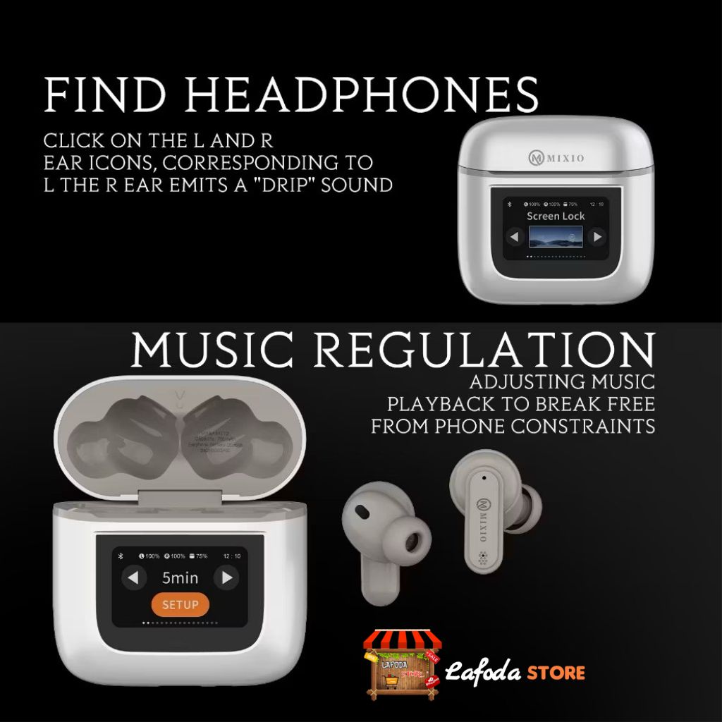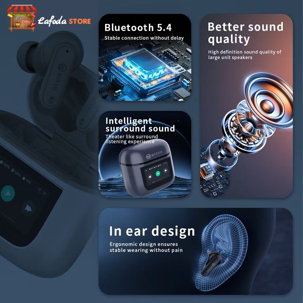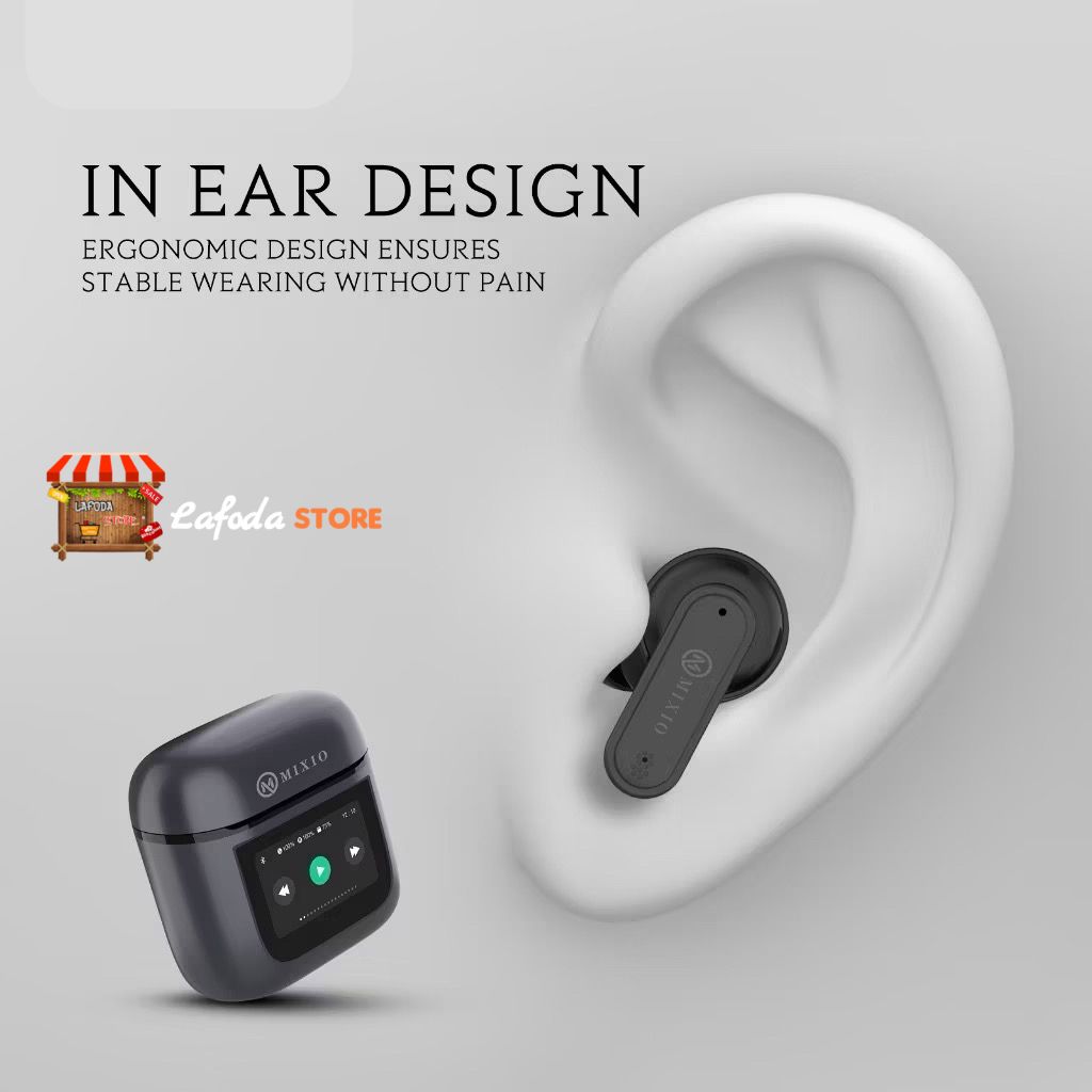 MIXIO MT-12 ANC TWS LCD Layar Bluetooth Headset Earphone Touch Screen V5.4 Smart Screen Active Noise Reduction