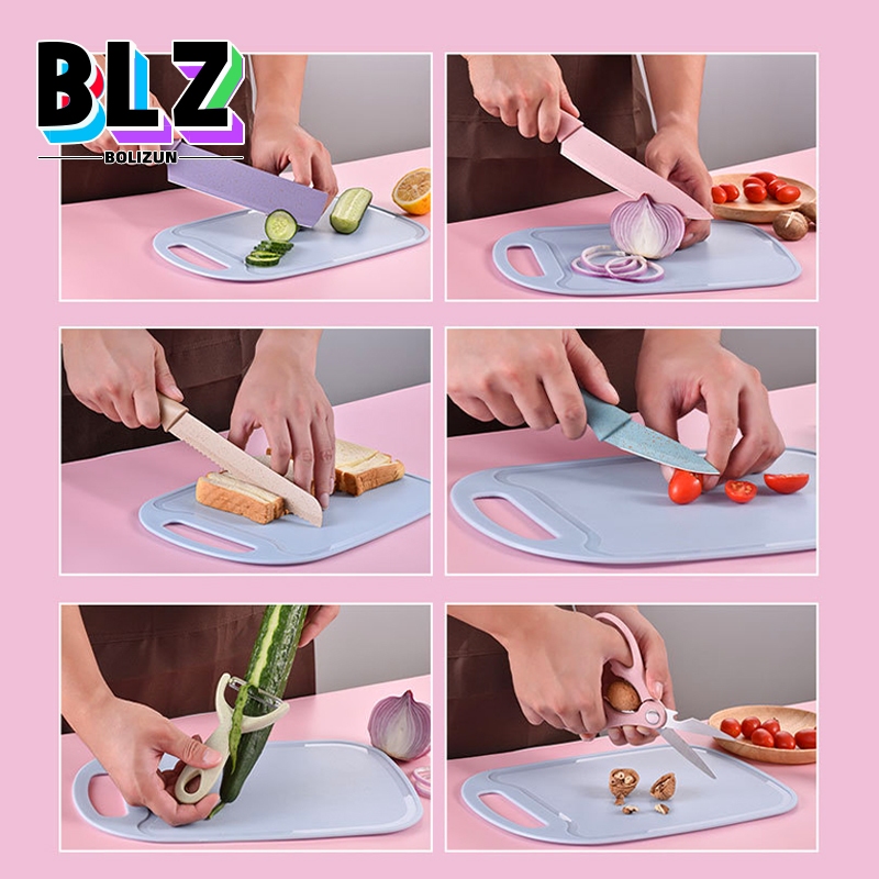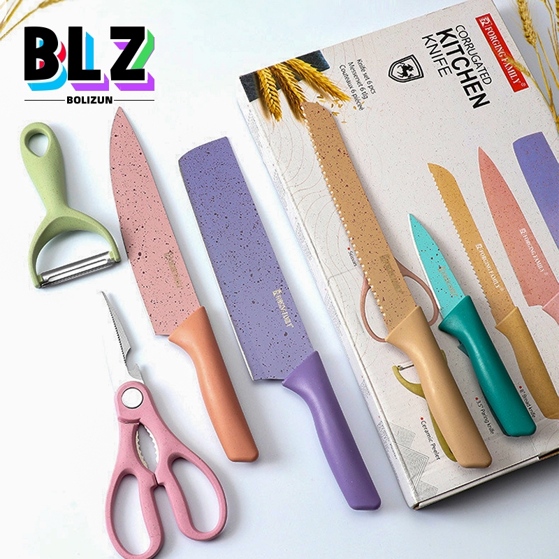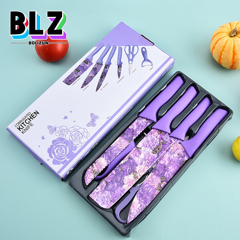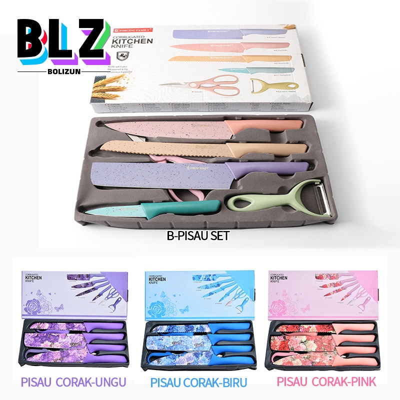 BOLIZUN Pisau set lengkap / Pisau Dapur Set 6 in 1 Bahan Stainless Steel dengan corak