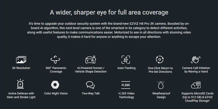 CCTV Ezviz H8 Pro 5MP 3K WiFi IP Camera Smart CCTV Outdoor Pan & Tilt Digital Lens