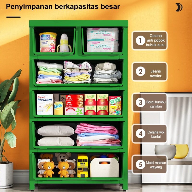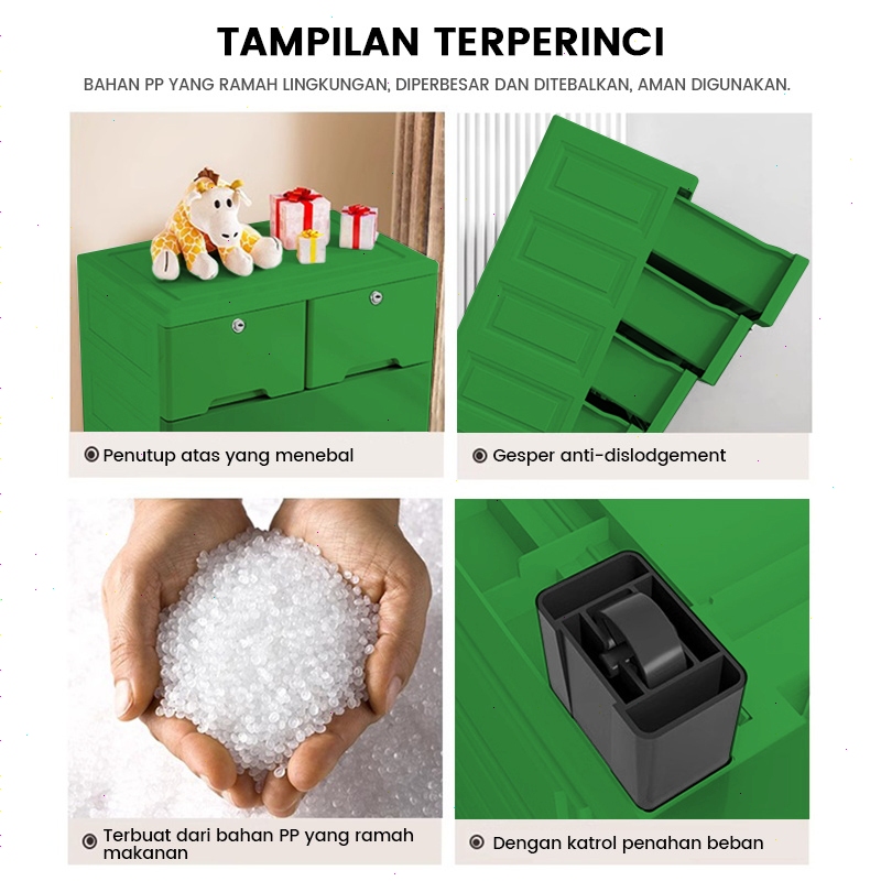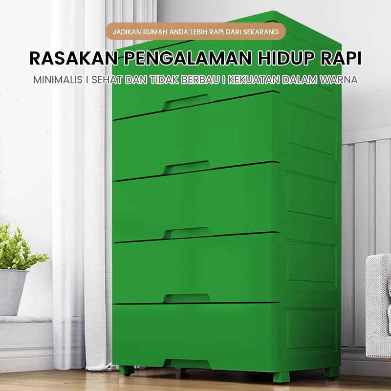 Hijau Loker Plastik Lemari Plastik Lemari Pakaian Laci Plastik Kabinet Drawer Storage Cabinet [ Garansi lima tahun ]