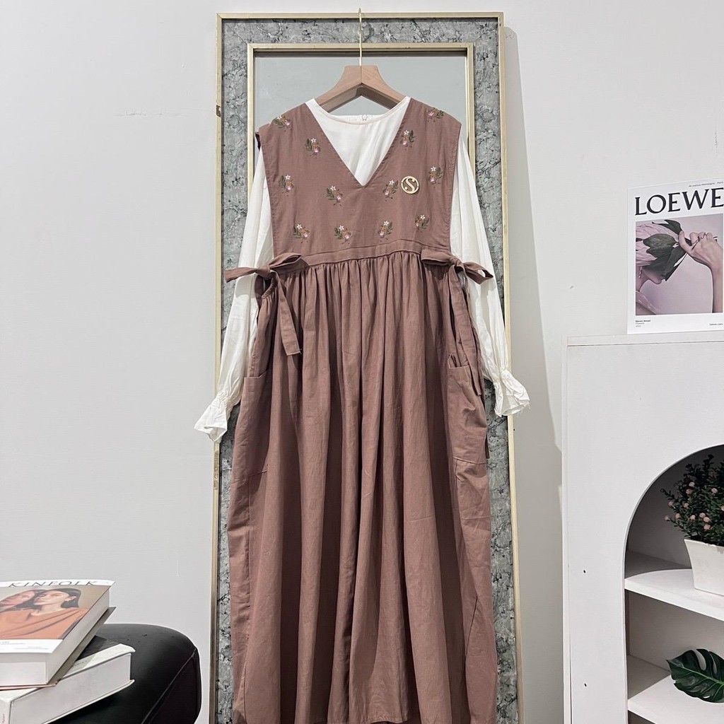 Grace Overall Set Kemeja Bahan Linen Bordir Kekinian OOTD