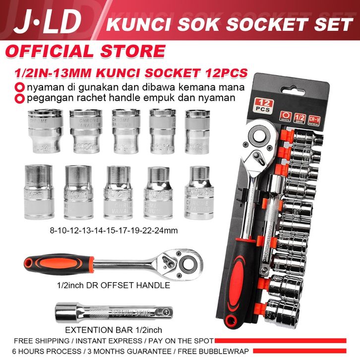 KUNCI SET SOCKET JLD 1/2IN CR-V 12PCS MULTIFUNGSI KUNCI 1 SET LENGKAP