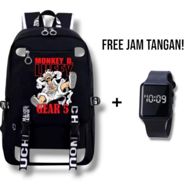 HS - TAS RANSEL SEKOLAH SD TK SMP ANIME ONE PIECE TAS SEKOLAH ANAK LAKI LAKI PEREMPUAN LUFFY GEAR 5