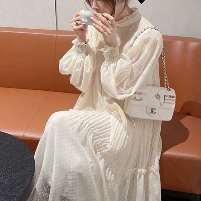 Dress Smile Long Dress Putih Oversize Premium Bumil Fairy Gamis Jumbo Kondangan Silk Premium M650