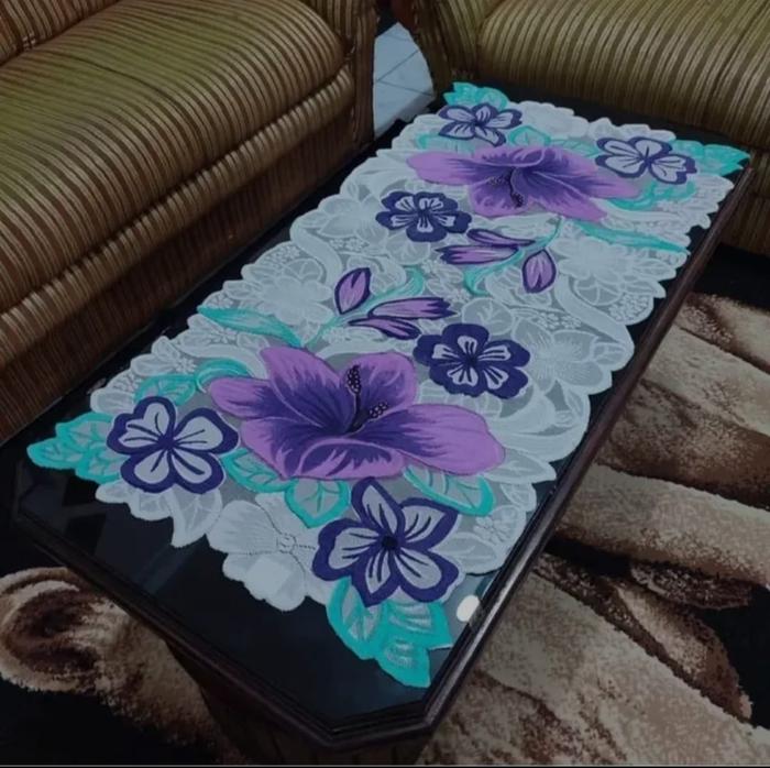 TAPLAK MEJA R- TAMU / TAPLAK MEJA MINIMALIS MOTIF BUNGA BESAR / TAPLAK MEJA TAMU MODERN Taplak Meja - ORANGE