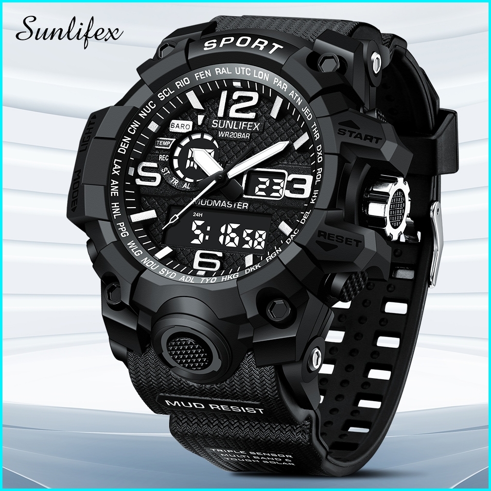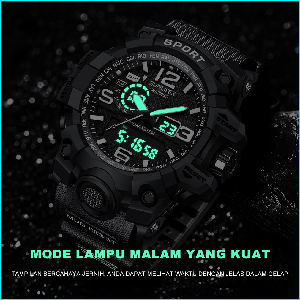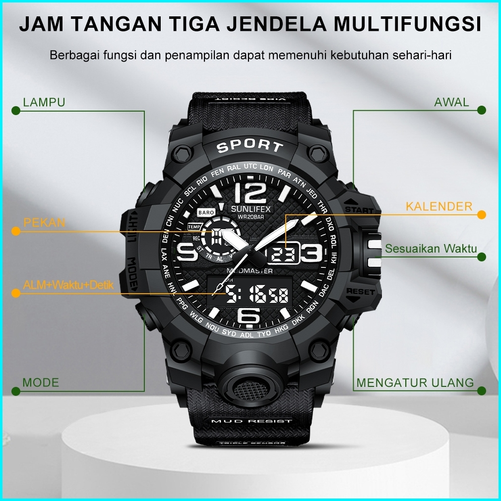 Sunlifex Jam Tangan Pria Digital Olahraga Kasual Tali Silikon Jam Tangan Cowok
