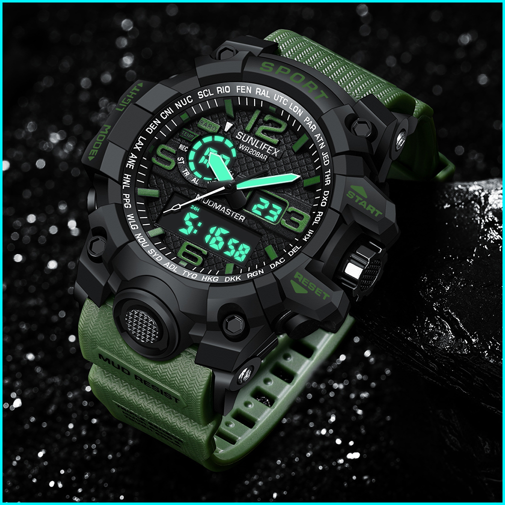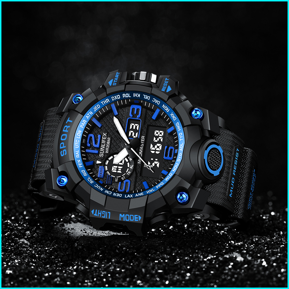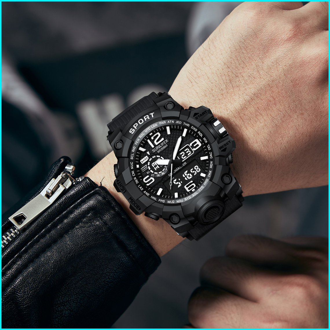 Sunlifex Jam Tangan Pria Digital Olahraga Kasual Tali Silikon Jam Tangan Cowok