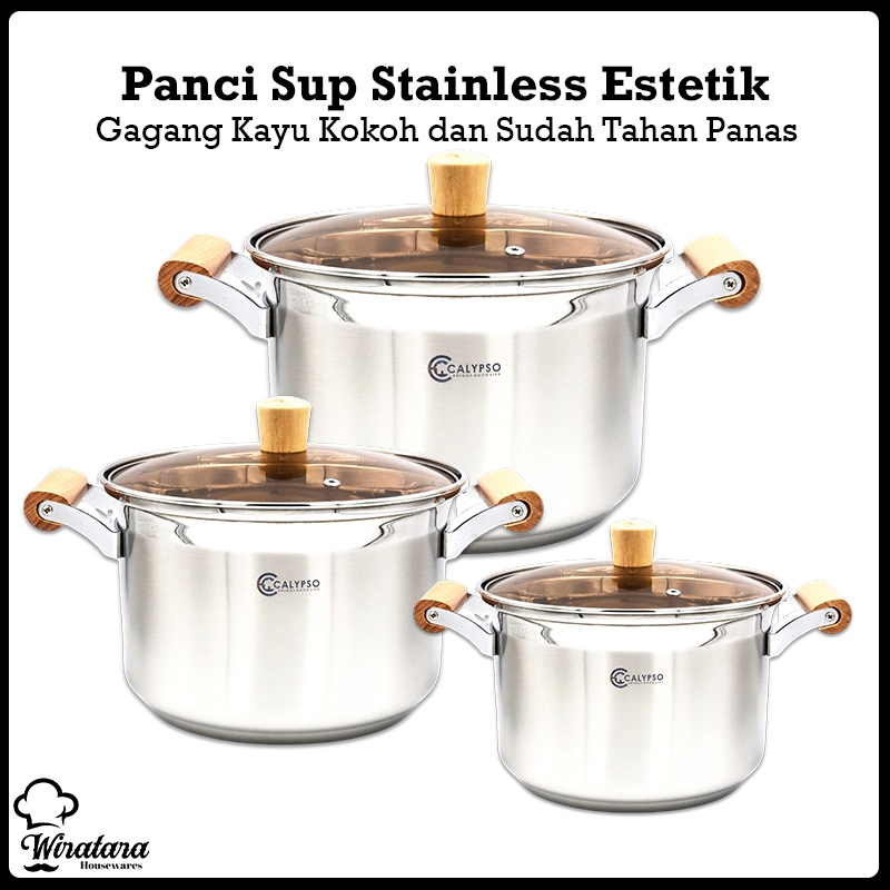 Calypso 9.5 Liter Panci + Lid | Soup Pot Stainless + Tutup Kaca | Panci Masak Mie Kuah Sup