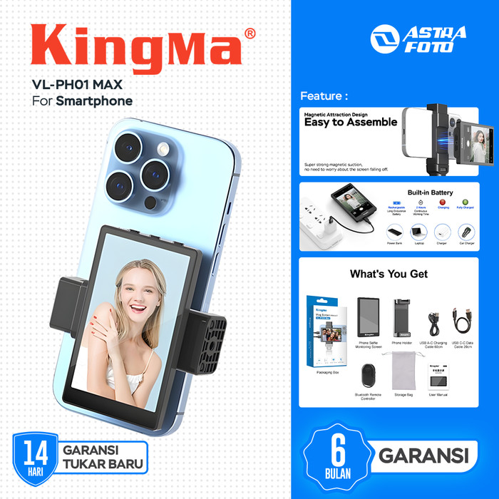 Kingma Vl-Ph01 Selfie Monitor Screen Phone Vlog For Iphone Handphone Smartphone