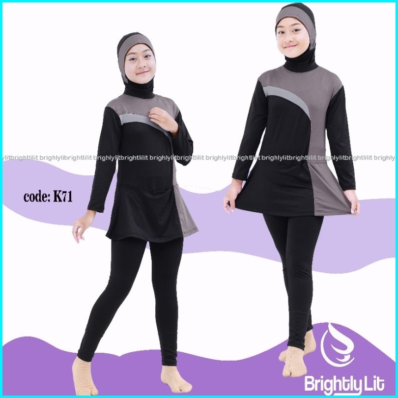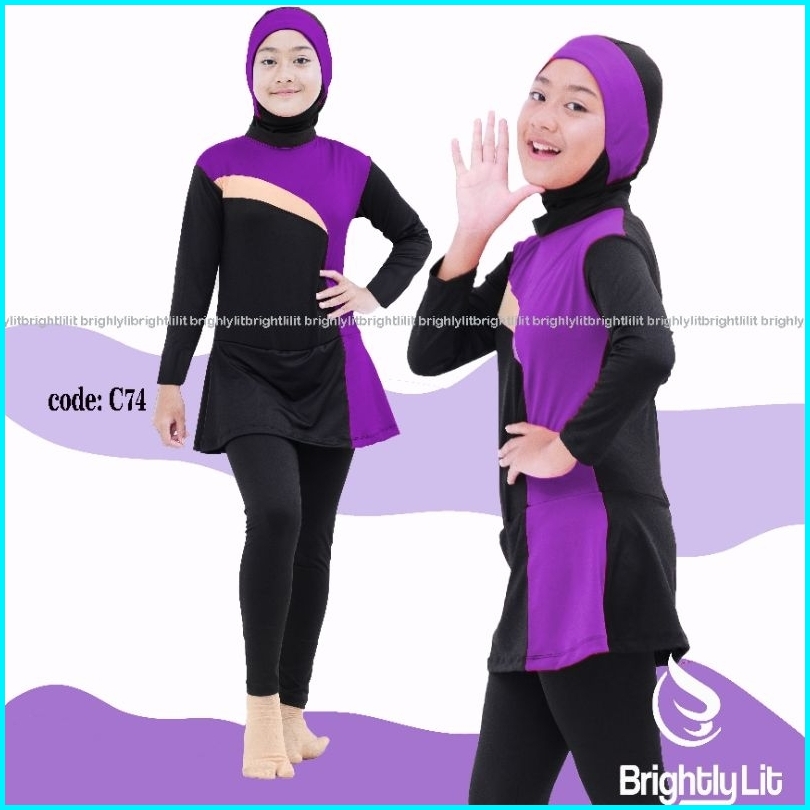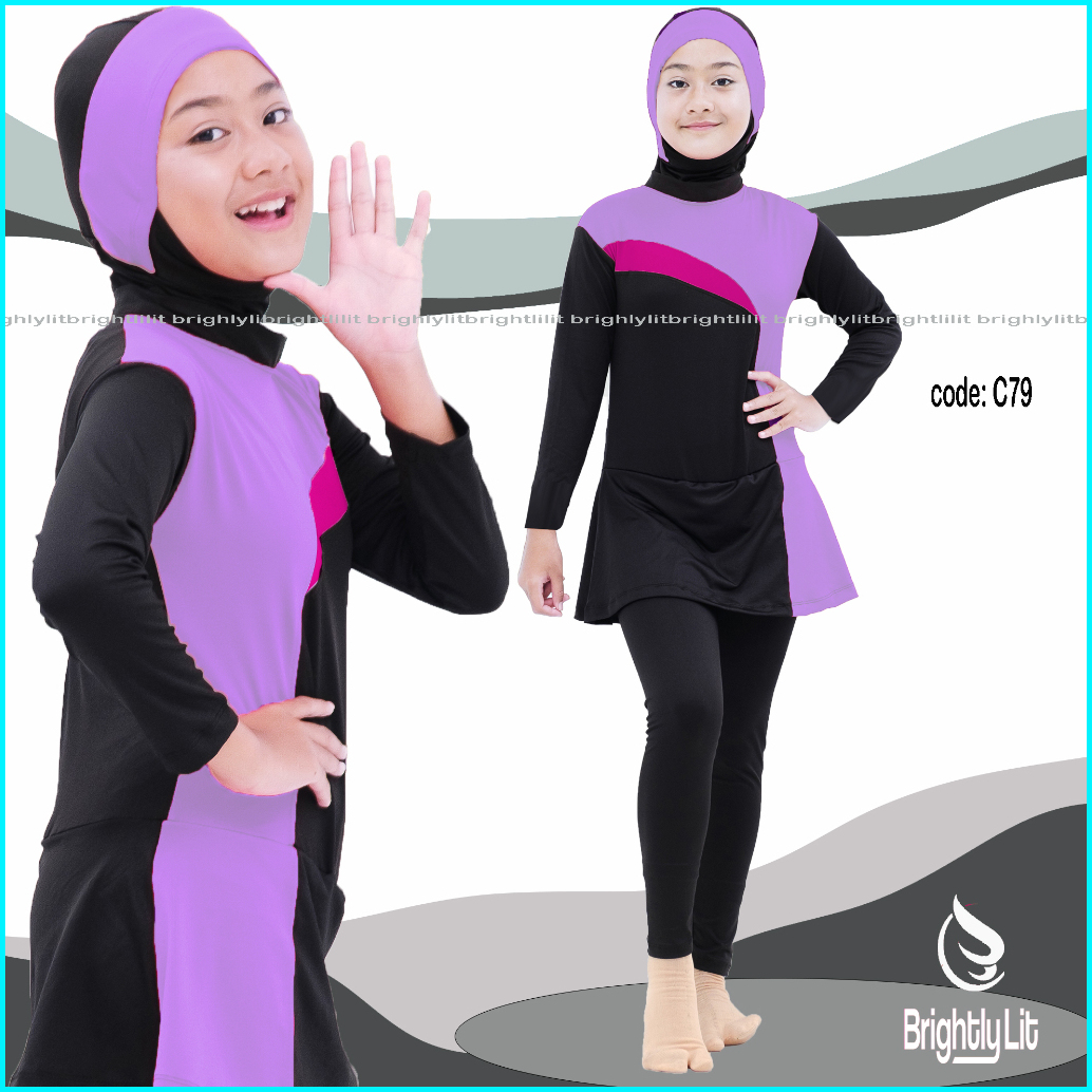 Brightlylit - 4 -12 Tahun Baju Renang Anak Perempuan Muslim Baju Renang Anak Wanita Muslimah Tk Baju Renang Anak Hijab B