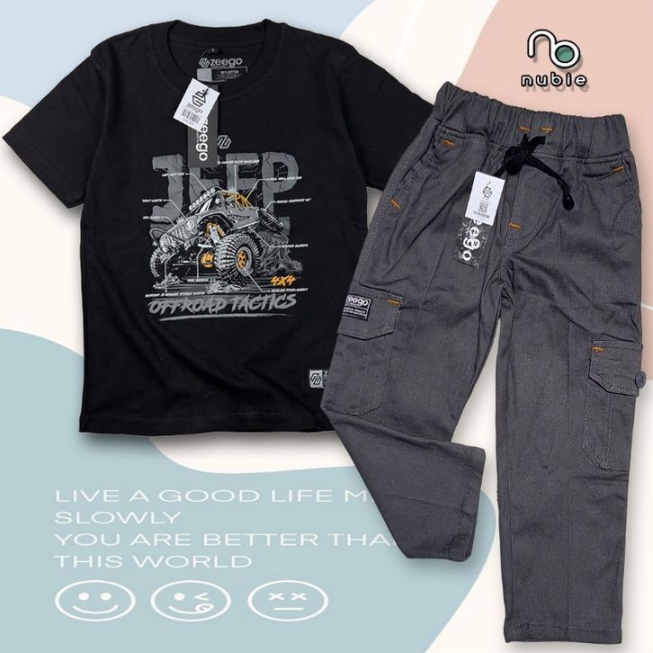 Setelan Stelan Anak Laki Laki Cowok Kaos Celana Kargo Panjang Usia 3 4 5 6 7 8 9 10 11 12 Tahun Motif Keren
