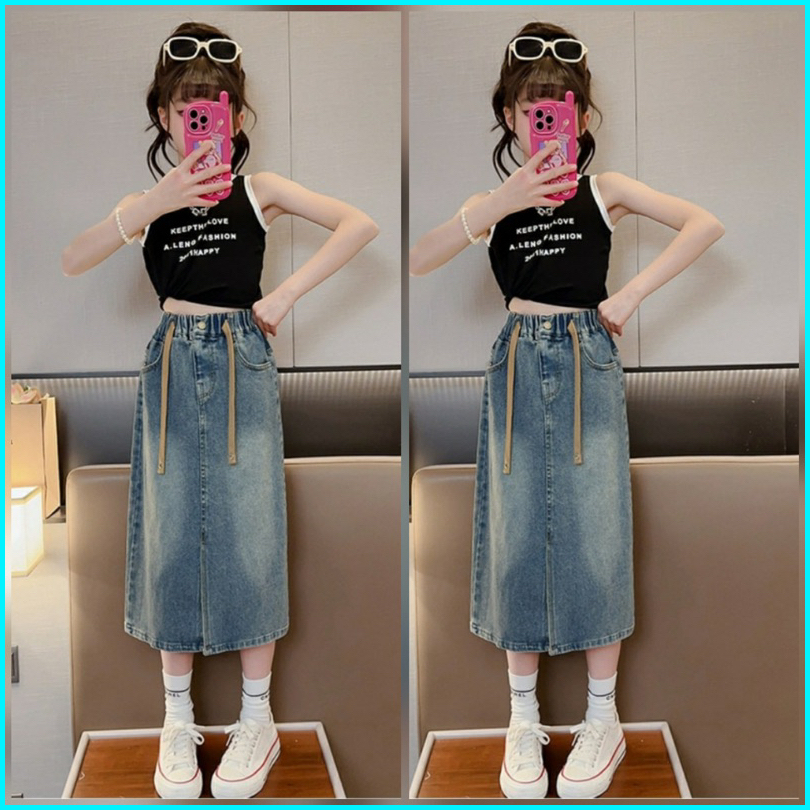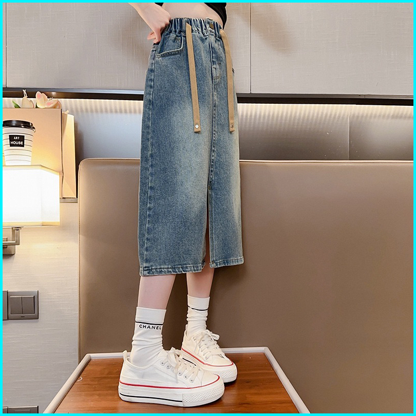 New Arrival Rok Jeans Anak Tanggung Perempuan Model Rok Belah Depan Usia 6-14 Tahun