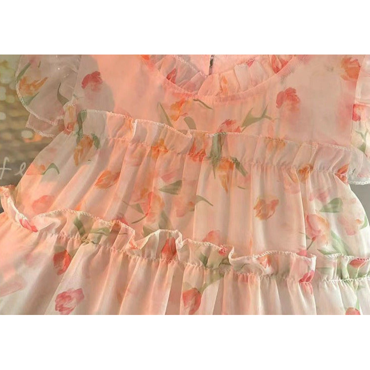 Baju Dress Renda Tanpa Lengan Fashion Anak Perempuan - Motif Flower Breeze