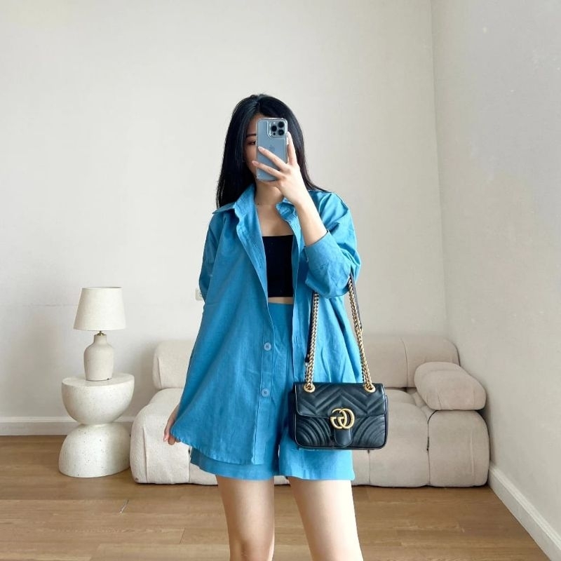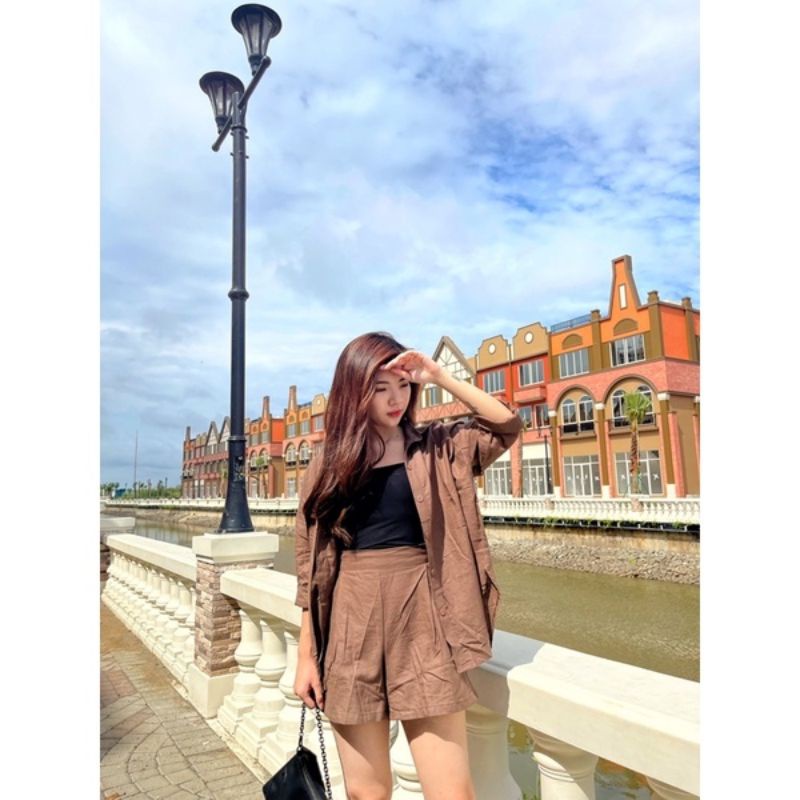 SETELAN WANITA TERA LINEN SET CELANA PENDEK ONE SET WANITA KEKINIAN - BKW