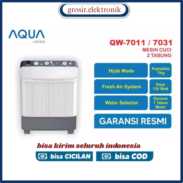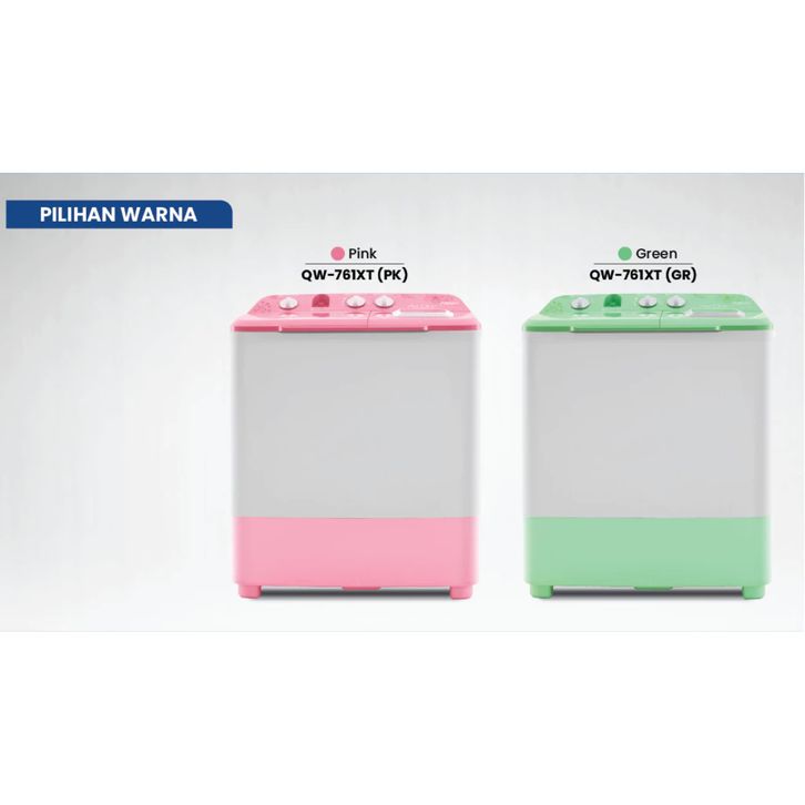 MESIN CUCI AQUA 7 KG 2 TABUNG JAPAN QW 7031 HT 761 XT HIJAB SERIES