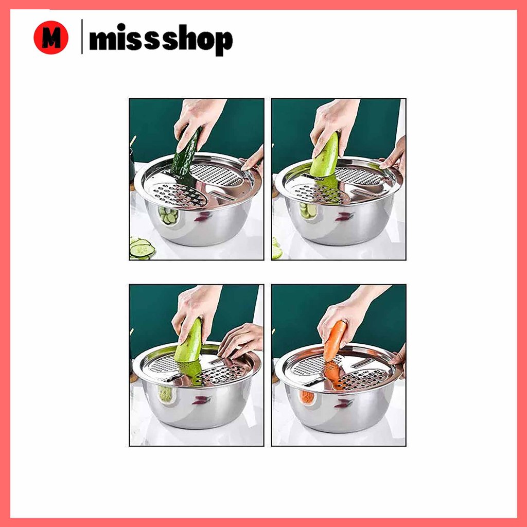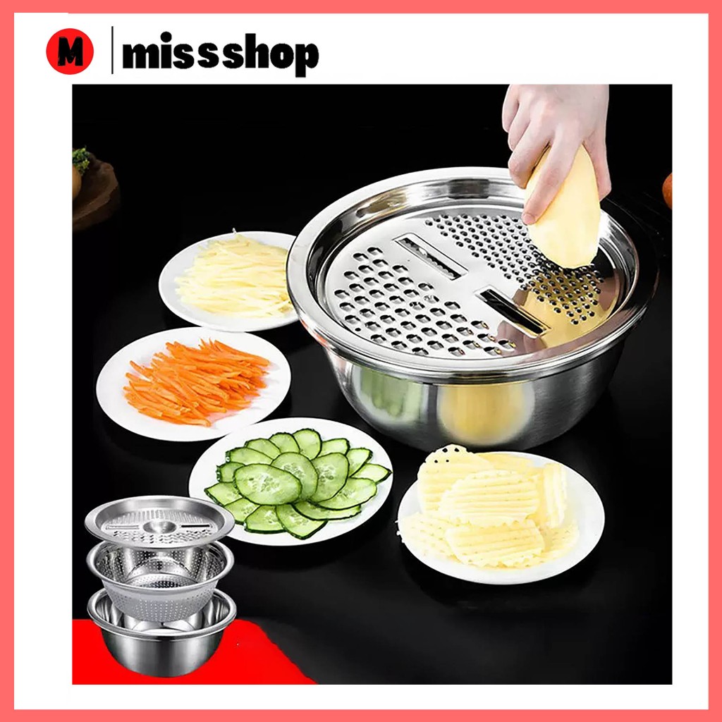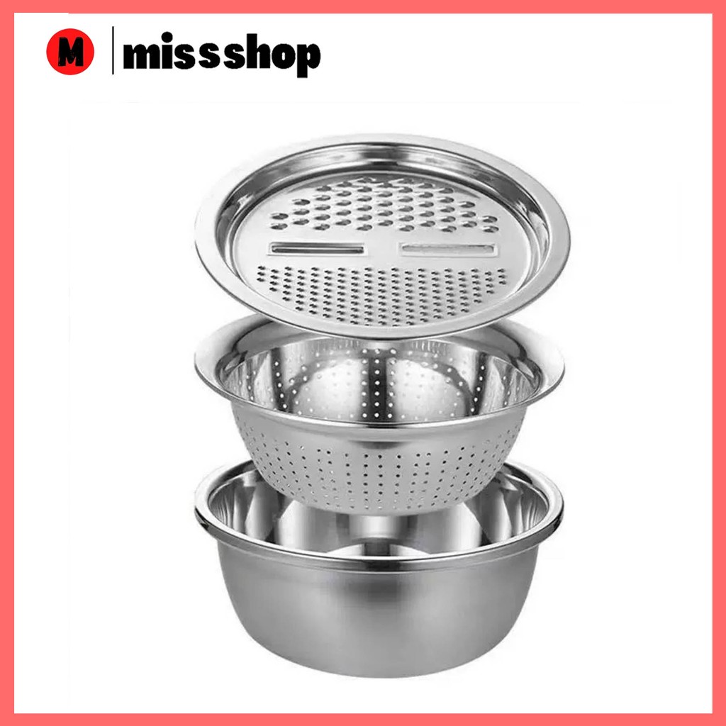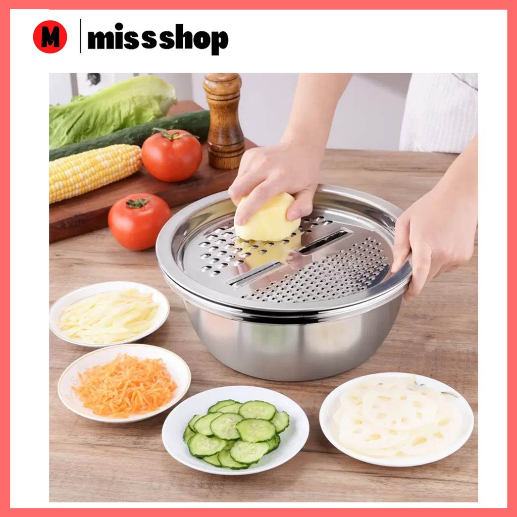 (MS) BASKOM PARUTAN SET 3 IN 1 STAINLESS - PARUTAN SERBAGUNA PENGIRIS SAYURAN BUAH BASKOM