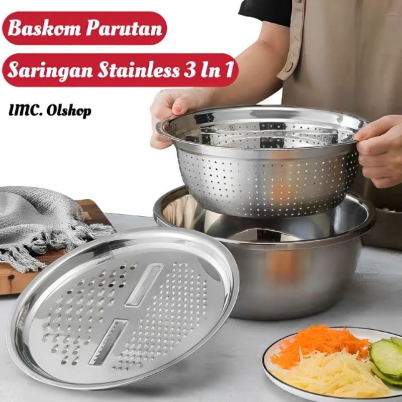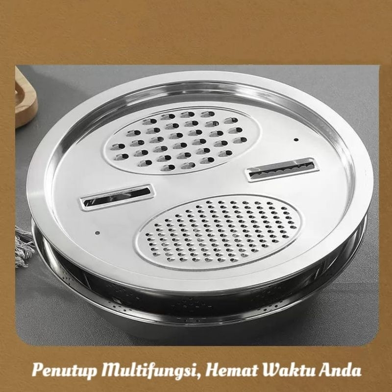 Baskom Parutan Saringan Stainless 3in1 parutan serbaguna Wadah Pot Stainless ⭐IMC ⭐