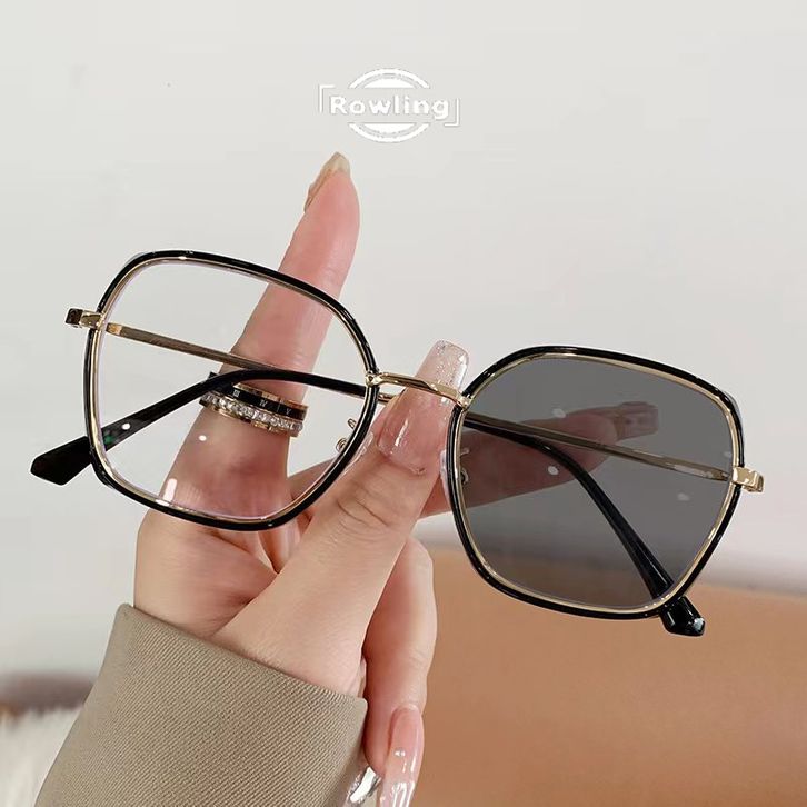 Kacamata Lensa Photocromic Anti Radiasi Kaca Mata Cewek Bingkai Kotak Titanium Anti UV 2 In 1 Fotocromik
