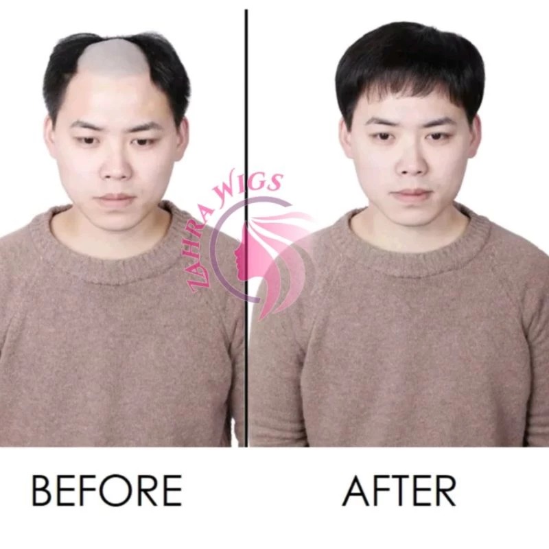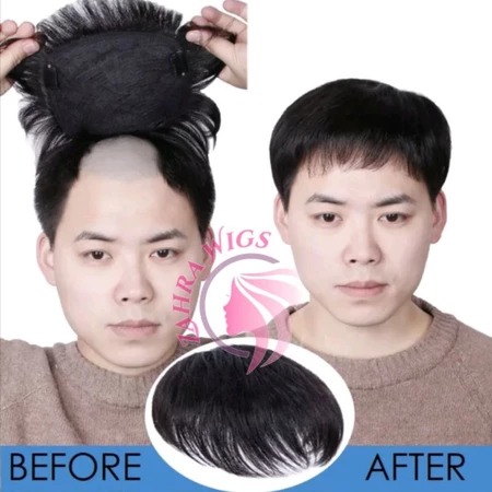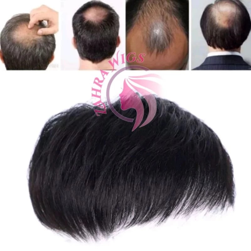 wig rambut pria Toupee Hairtop Penutup Botak Sebagian Versi Cowok Korea Penutup Botak Pria