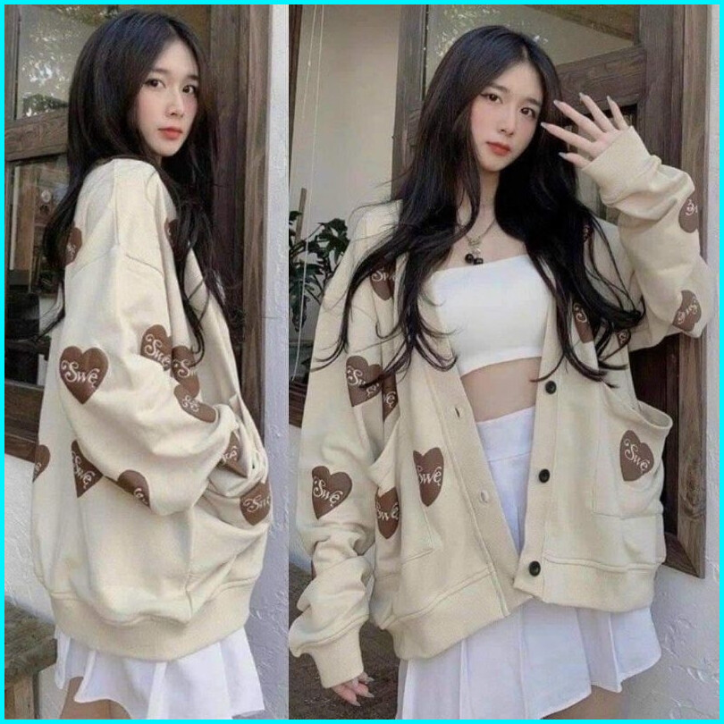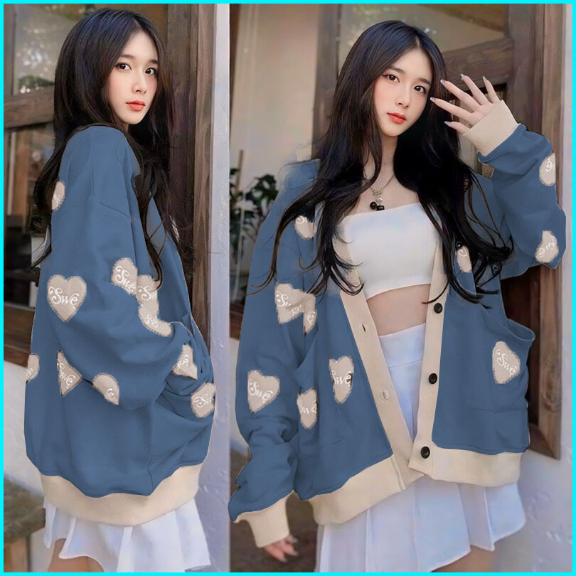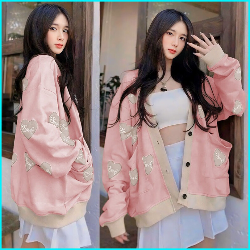 Swe Love Cardie Sweater Oversize Wanita Korean Style Cardy Kancing Bersaku