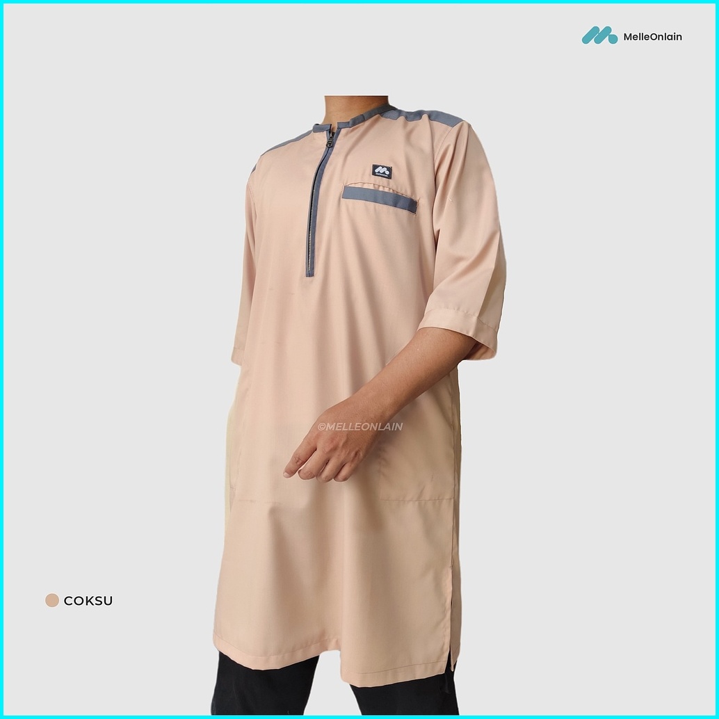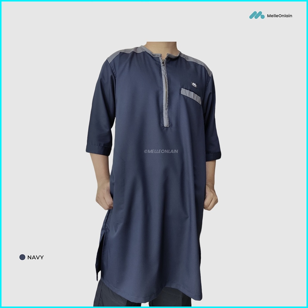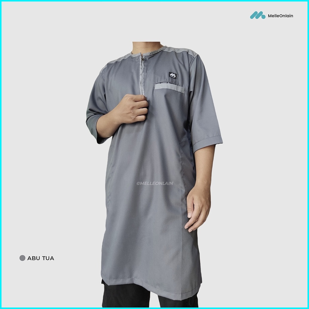 Kurta Pakistan Gamis Oblong Pria Lengan Pendek 3 4 Variasi Lis Plat Katun Toyobo Premium By Melleonlain