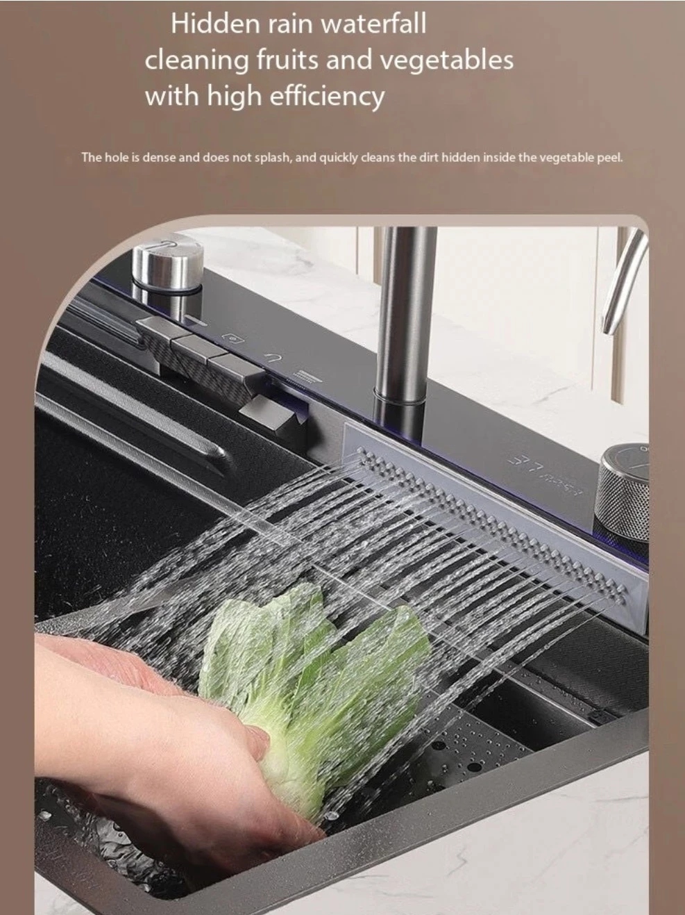 Kitchen Sink Luxury Stainless Black Digital Led / Sink Waterfall Led 1 Bowl