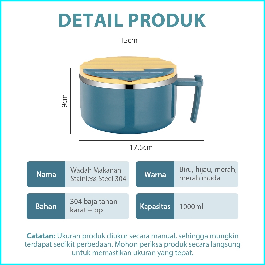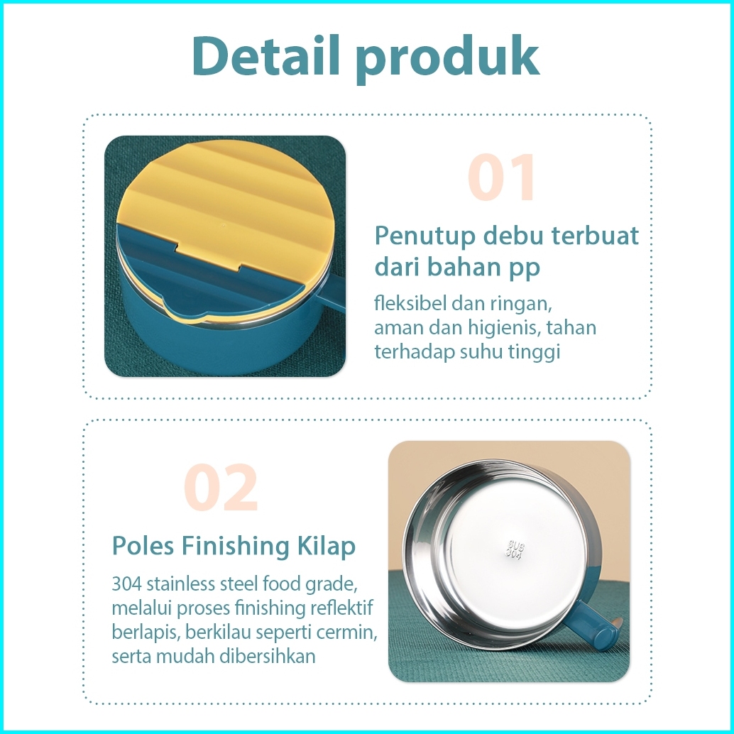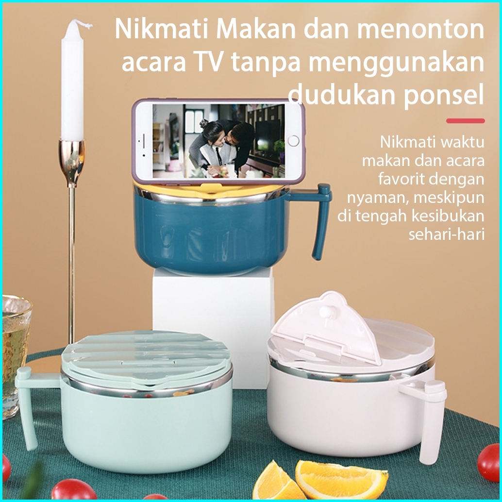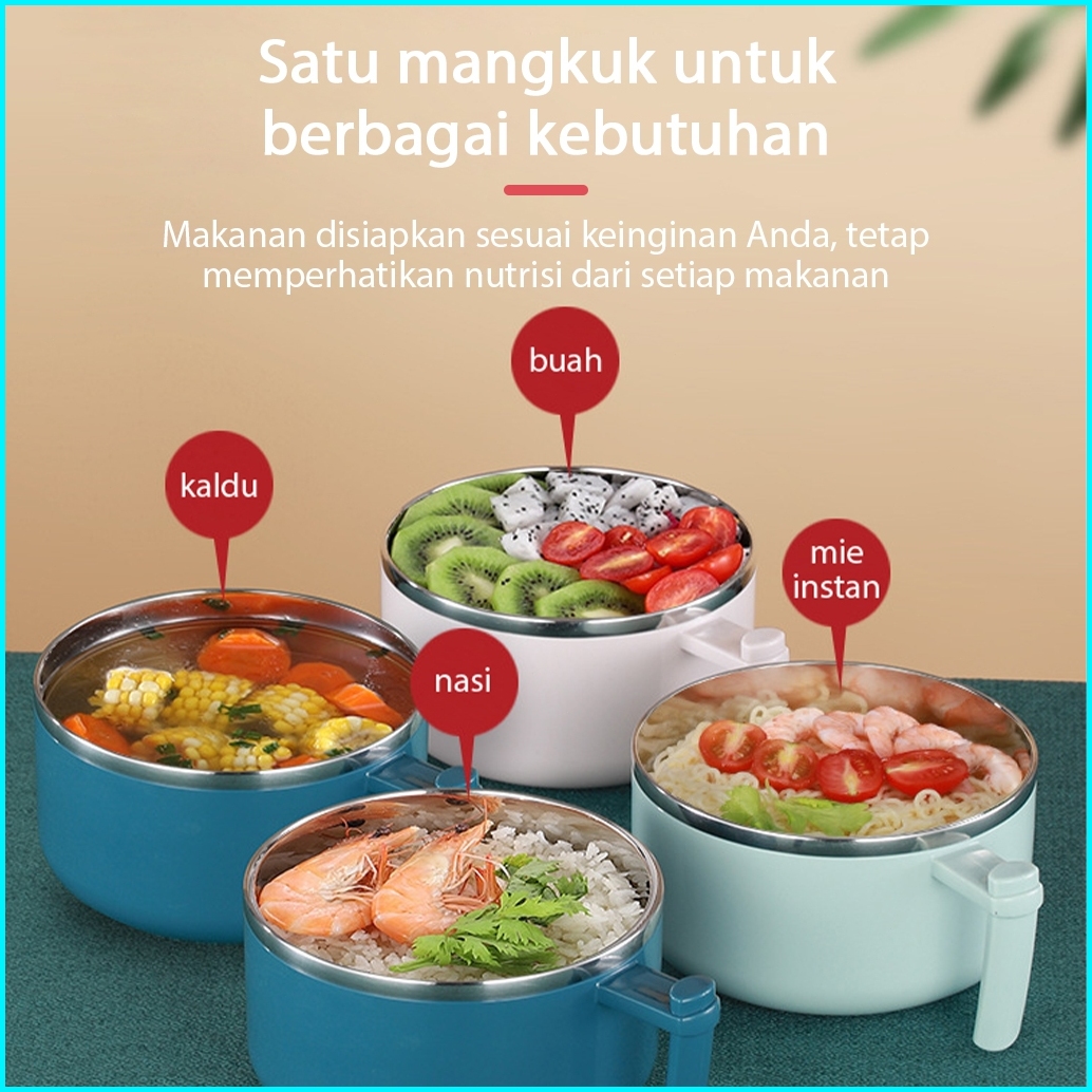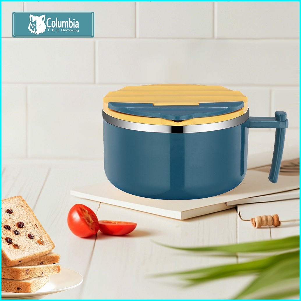 Columbia Mangkuk Mie 1000 Ml Dengan Pegangan Bahan Stainless Steel Dan Tutup Anti Tumpah