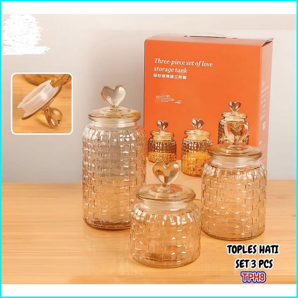 Toples Snack Kaca Set 3in1 Tempat Kue Kering Set 3 Kaca