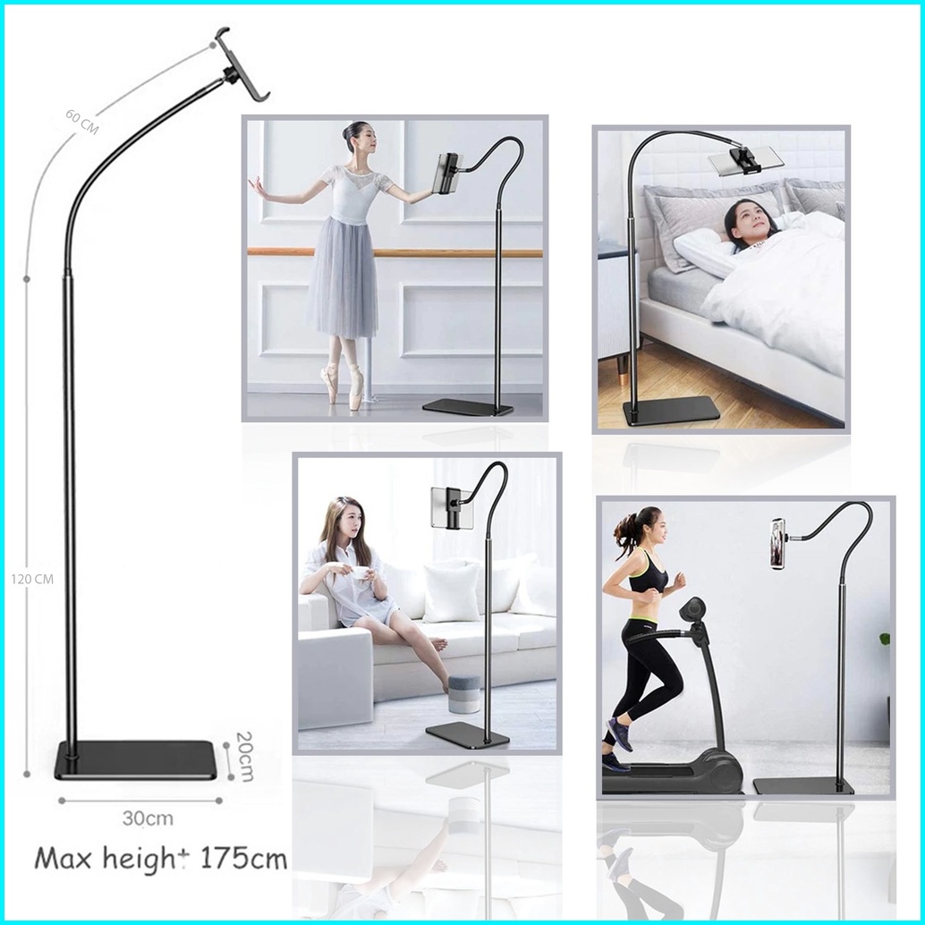 Lazypod Lantai Besi 1.4m 1.75m Phone Holder Stand For Smartphone Tablet Multifungsi
