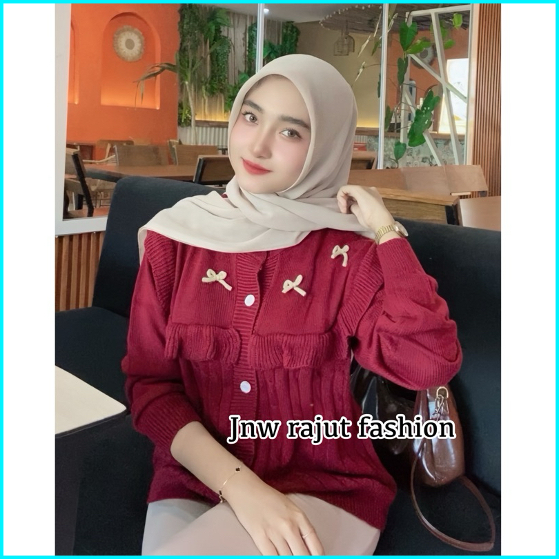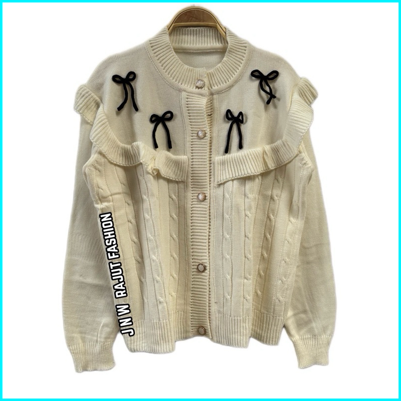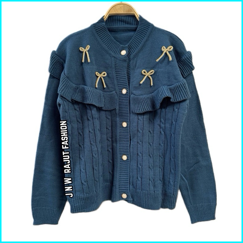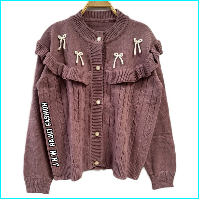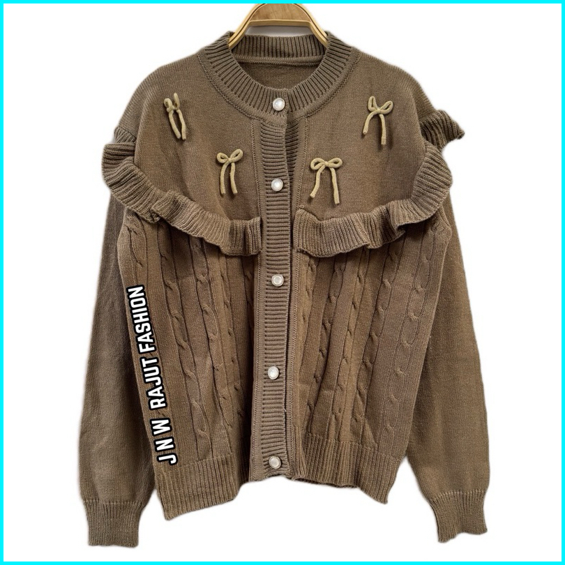 Dianra Cardigan Knitwear Ruffle Pita Cablle Atasan Baju Rajut Wanita Lengan Panjang