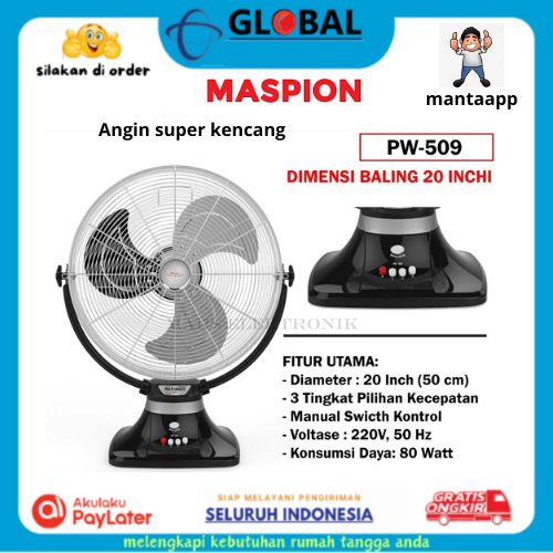 Maspion PW-509 Power Fan 20" Tofano Kipas Angin Daya Industrial 500 mm Garansi Resmi SNI