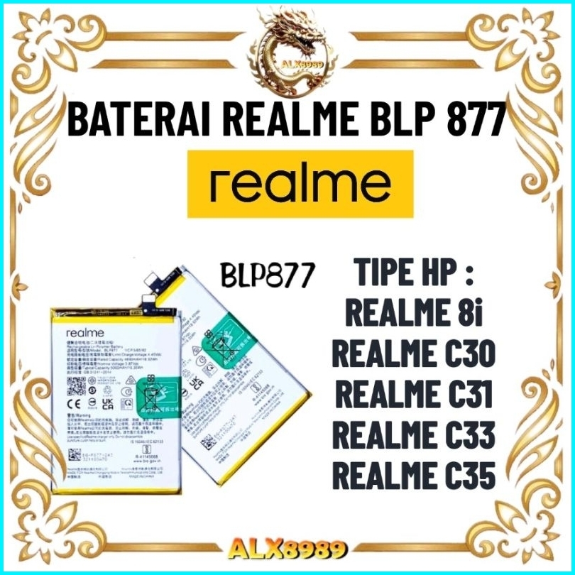 Baterai Blp877 Realme 8i - Realme C30 - Realme C31 - C33 - C35 5000mah Blp-877 Model Tanam Original