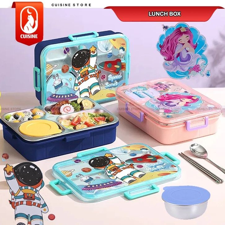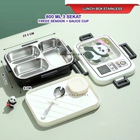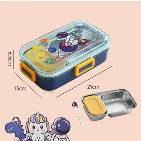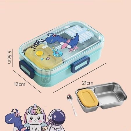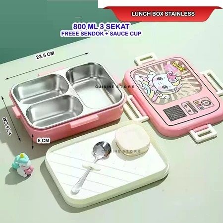 OX SET Anak Sekolah Stainless 304 Sekat 3 dan 4 Kotak Makan Bekal Motif Bebek Dino Unicorn