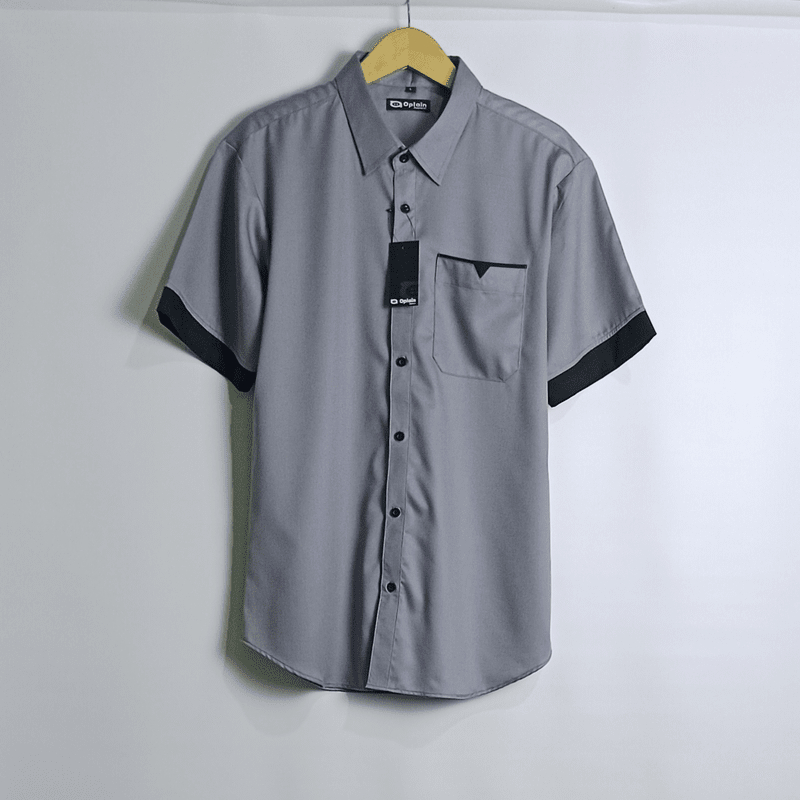 OPLAIN HEM PRIA LENGAN PENDEK KOMBINASI LIST KEMEJA D3W4SA CASUAL DISTRO